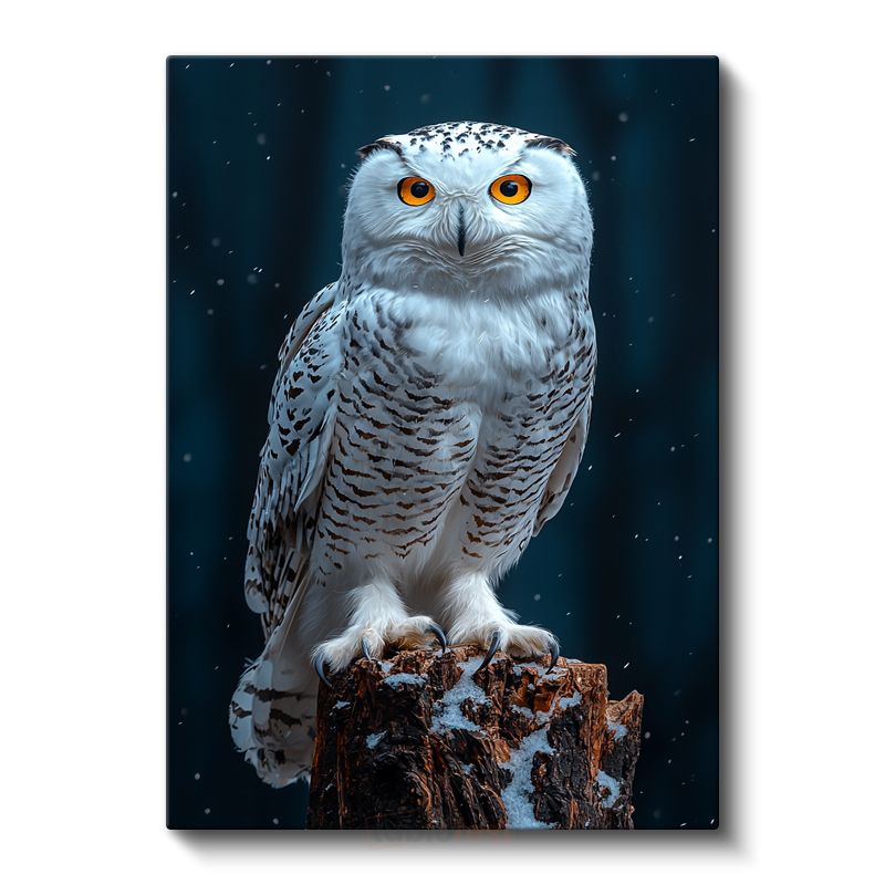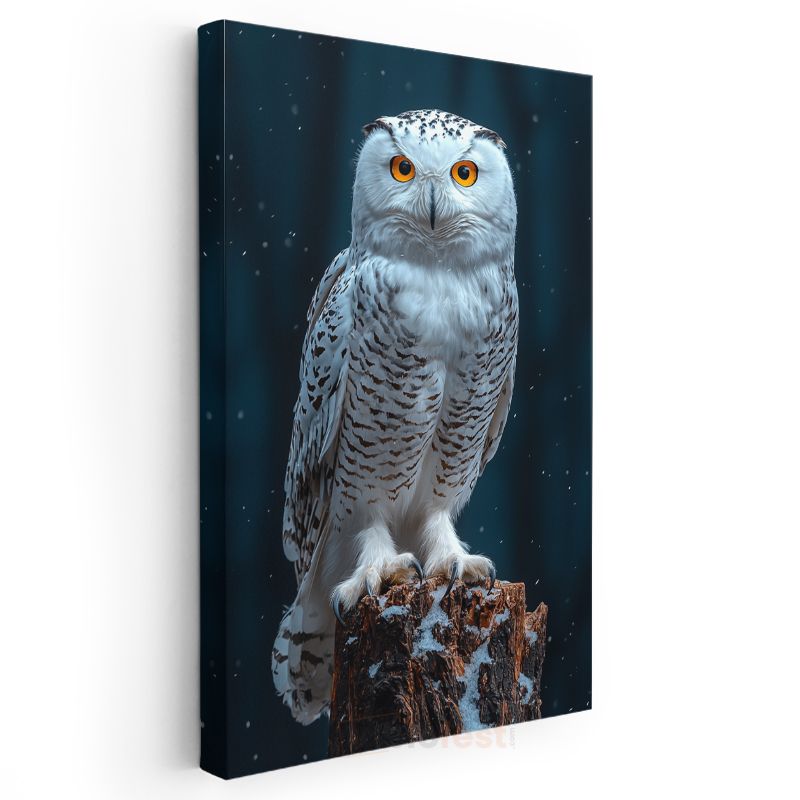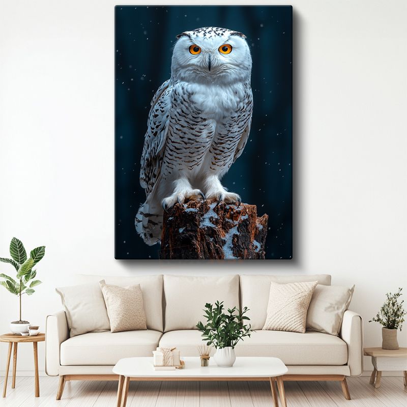 Kar Baykuşu - Kütük Üzerinde Turuncu Gözlü Avcı Kanvas Tablo