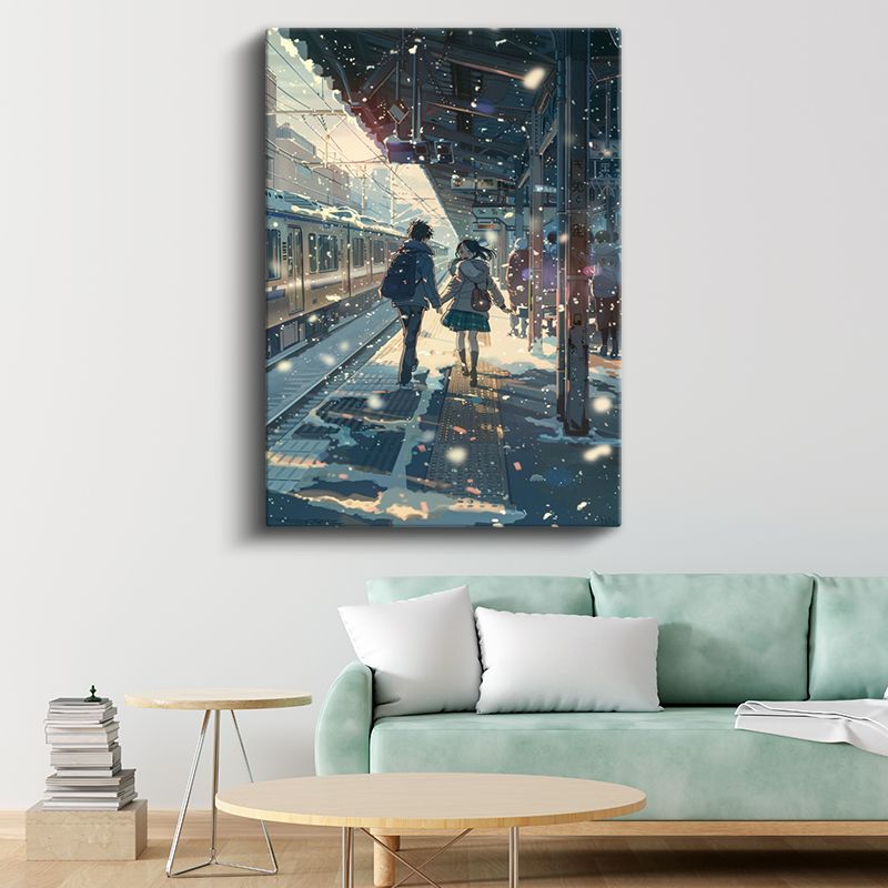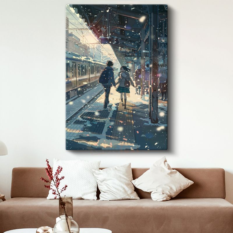 Kar Taneleri İstasyonu - Romantik Buluşma Anime Kanvas Tablo