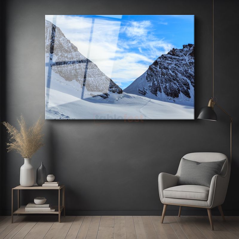 Kar Vadisi - Majestic Dağ Geçidi Manzarası Cam Tablo