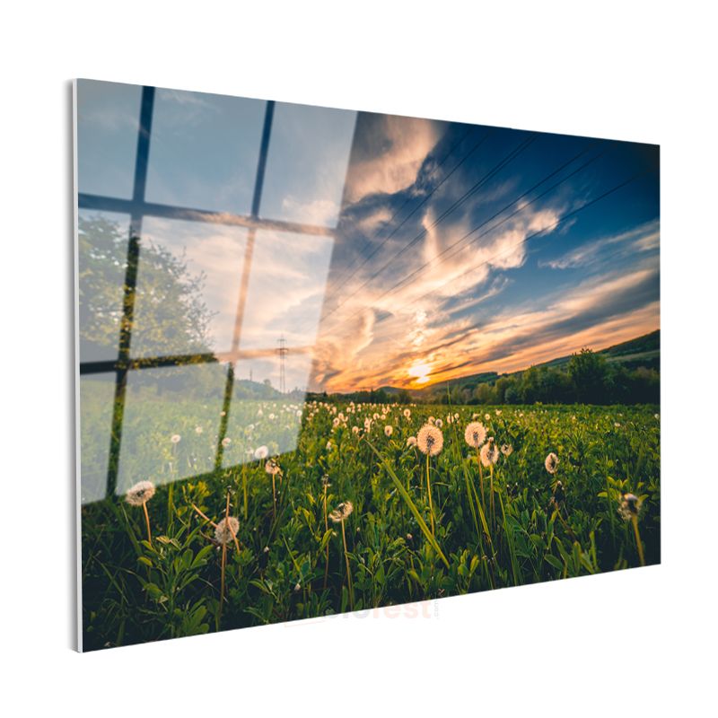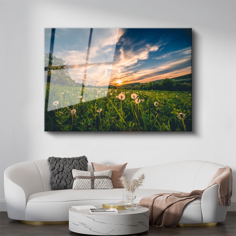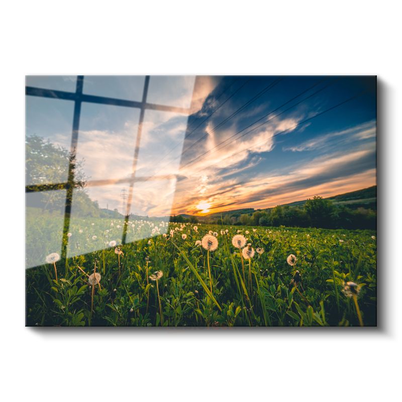 Karahindiba Tarlası - Gün Batımı Manzaralı Cam Tablo