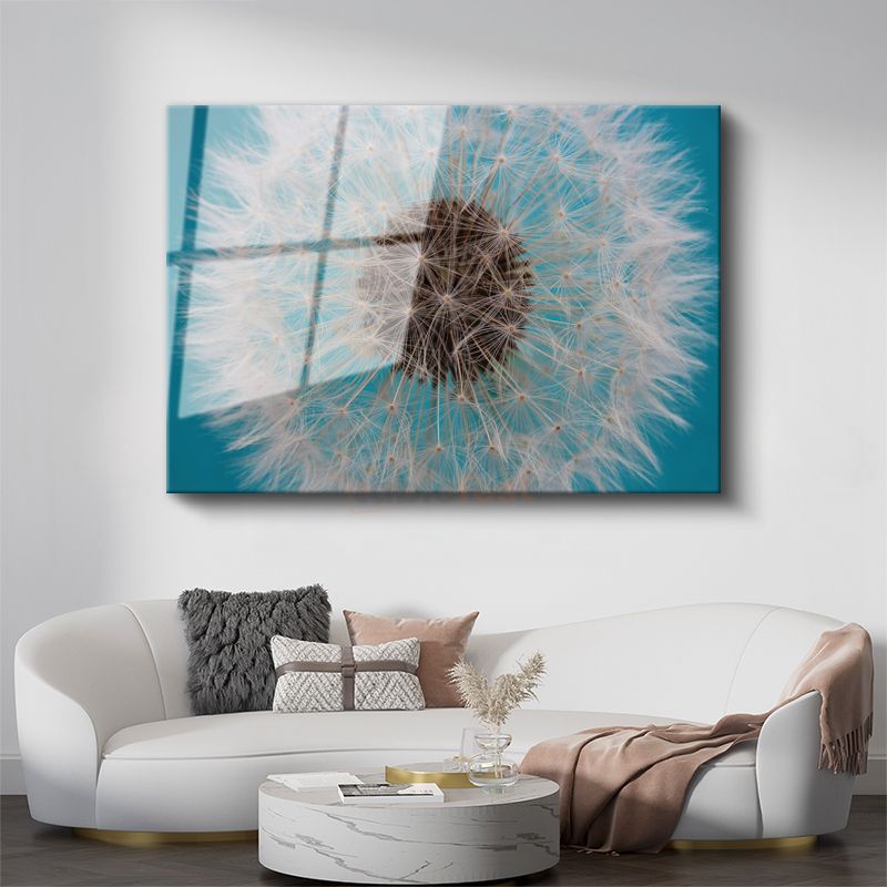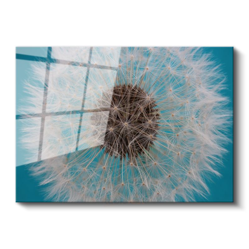 Karahindiba Tohumu - Turkuaz Fonlu Detaylı Çekim Cam Tablo