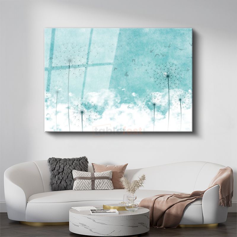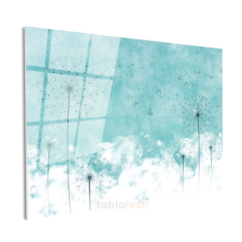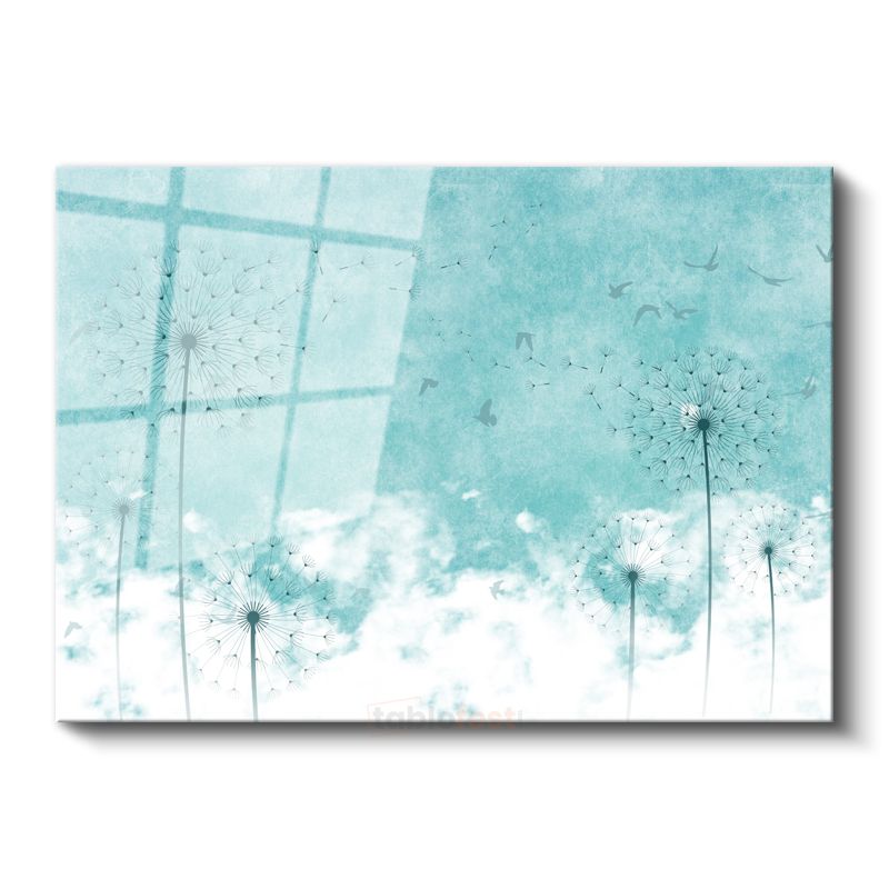 Karahindiba - Turkuaz Fonda Estetik Tasarım Cam Tablo