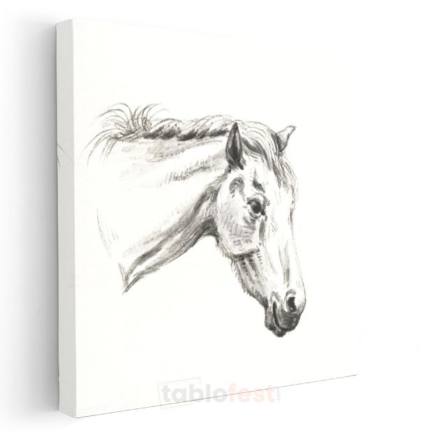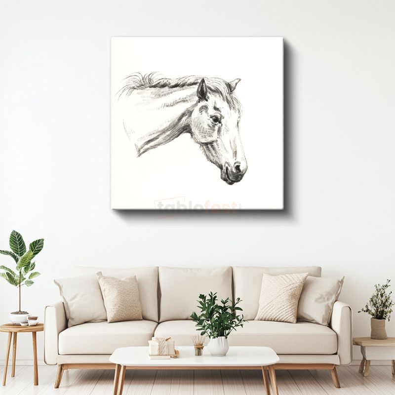 Karakalem At - Zarif Çizgilerle Betimlenen Asalet Kanvas Tablo