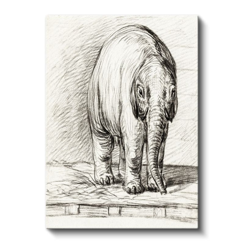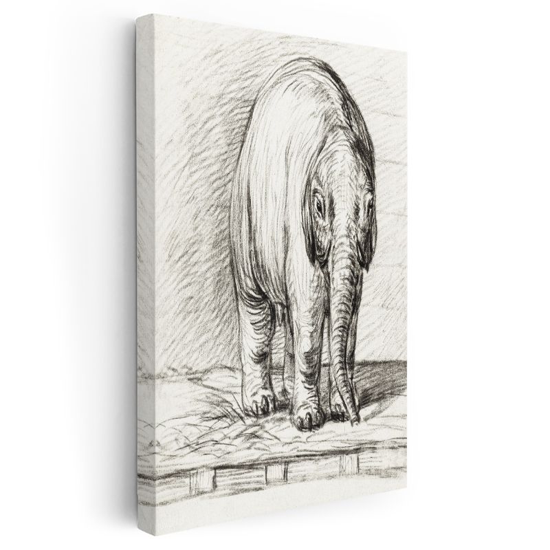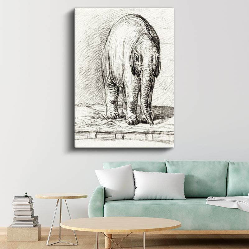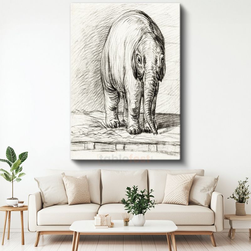 Karakalem Fil - Zarif Duruşlu Devasa Dostumuz Kanvas Tablo