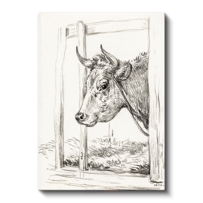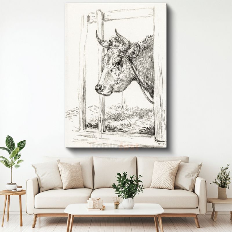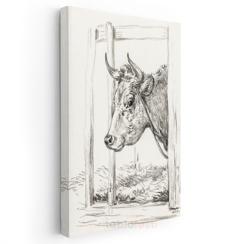 Karakalem İnek - Nostaljik Çiftlik Hayvanı Kanvas Tablo