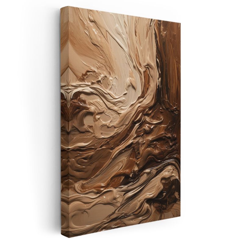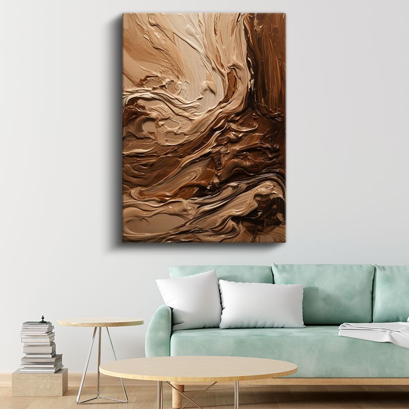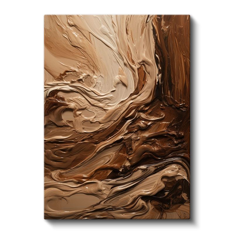 Karamel Akışı - Dinamik Kahverengi Boya Dokusu Kanvas Tablo