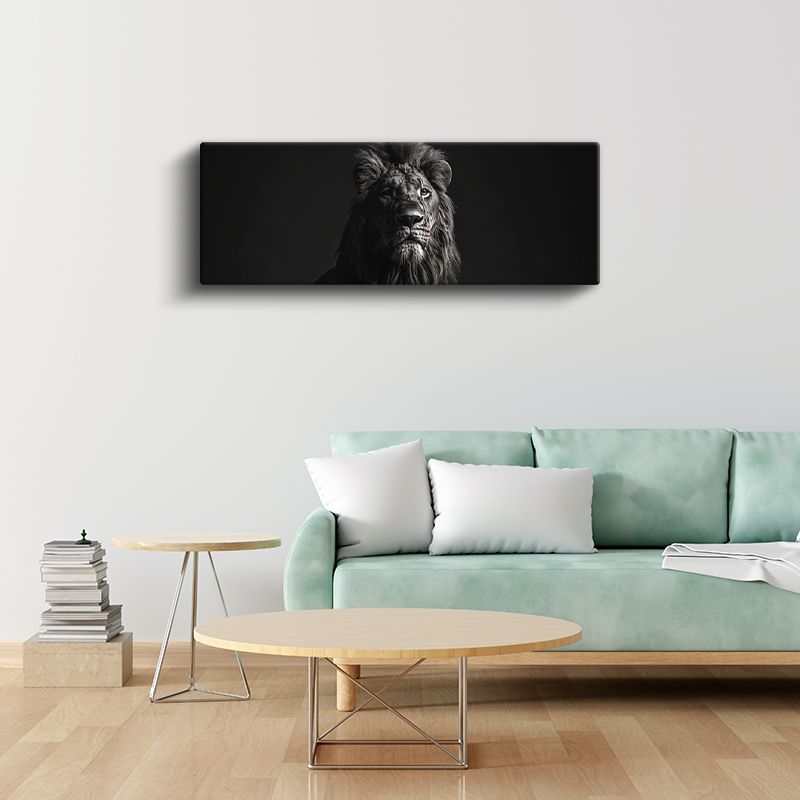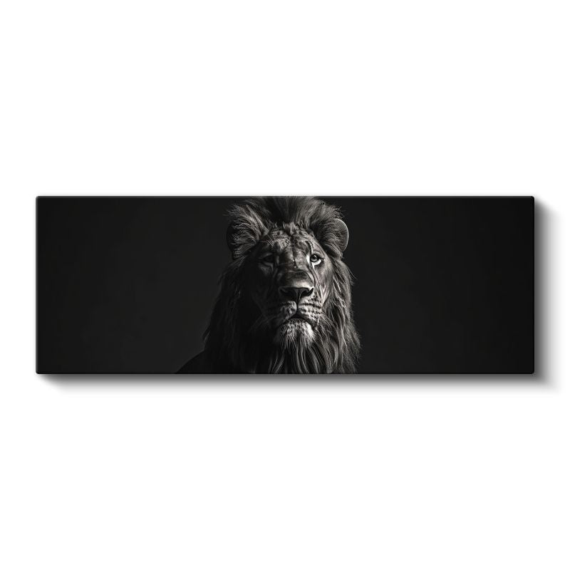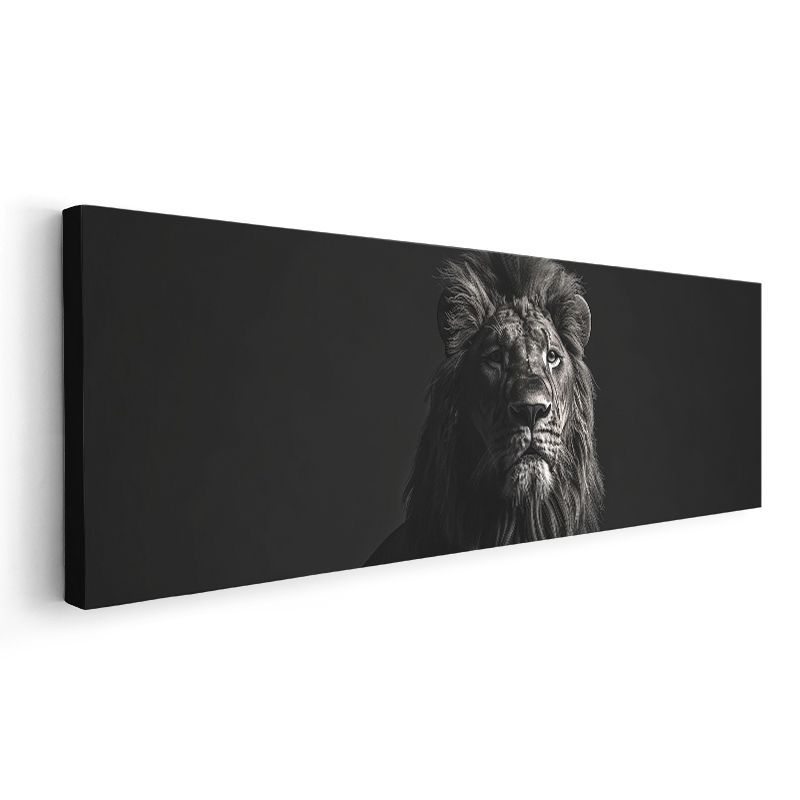 Karanlığın Kralı - Dramatik Siyah Beyaz Aslan Portresi Kanvas Tablo
