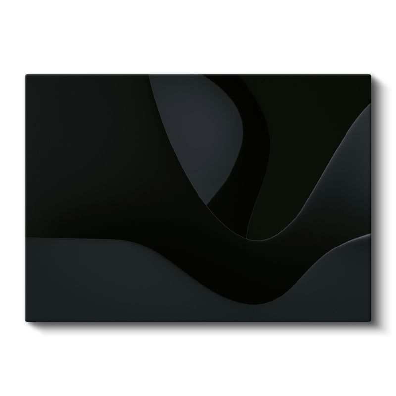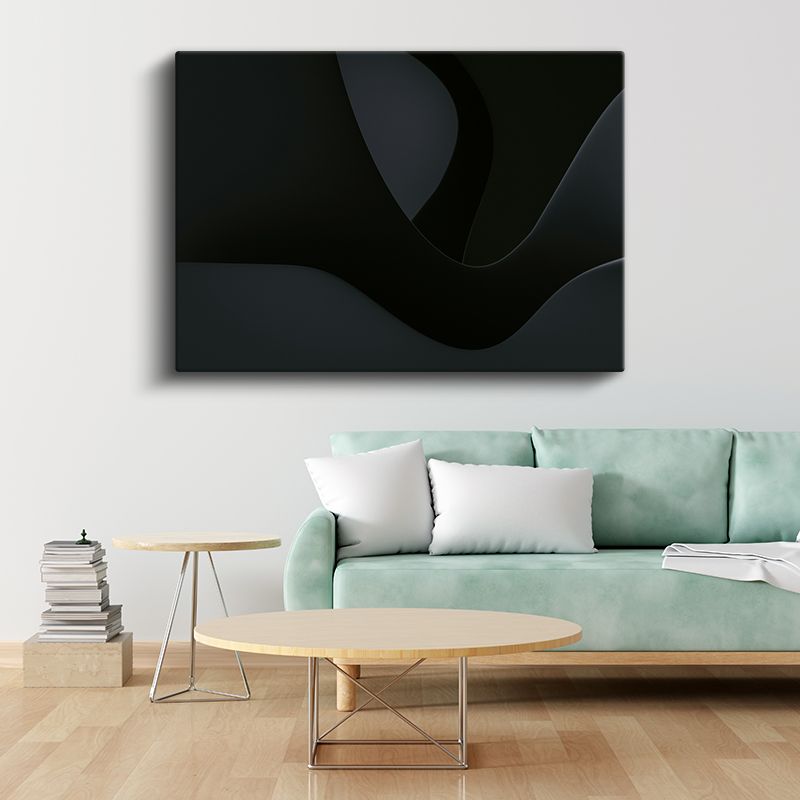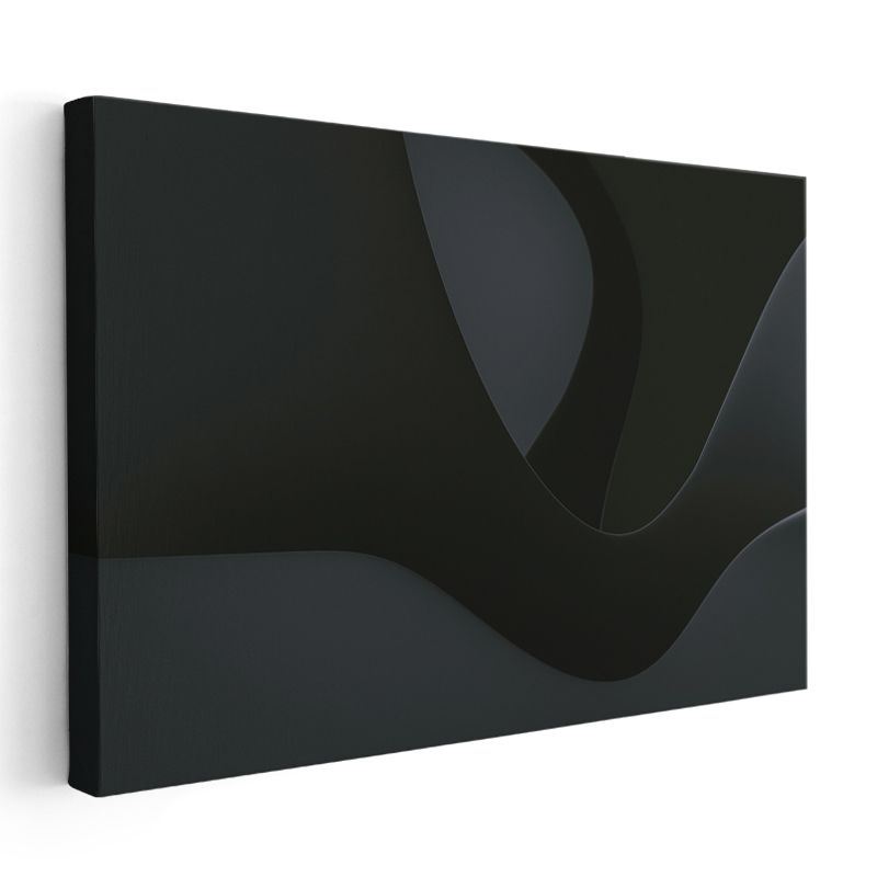 Karanlık Derinlik - Siyah Üzerine Minimalist Dalgalı Formlar Kanvas Tablo