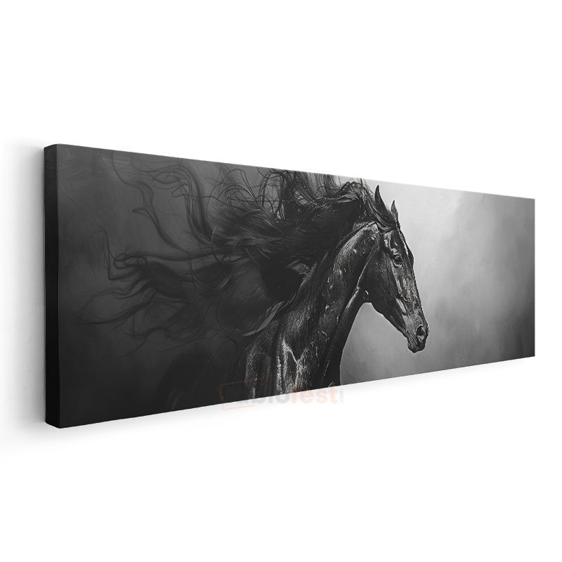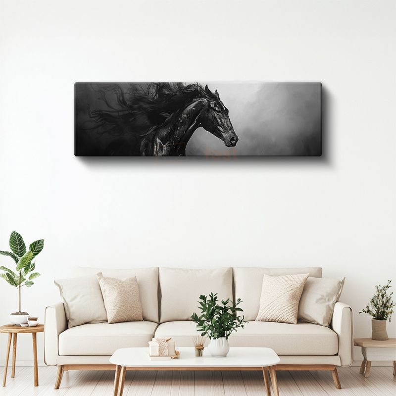 Karanlık Ruh - Siyah Beyaz At Profili Kanvas Tablo