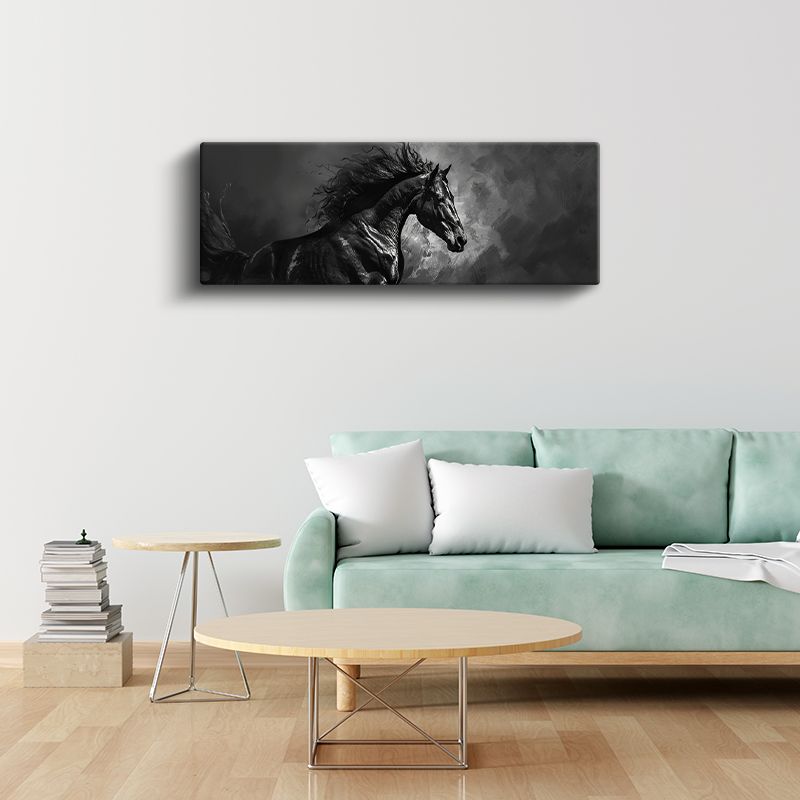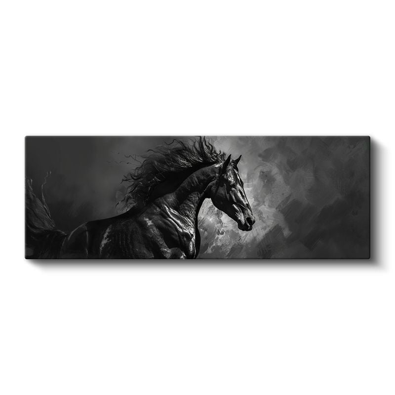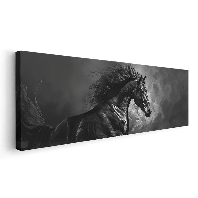 Karanlık Rüzgar - Yelesi Dalgalanan Siyah At Kanvas Tablo