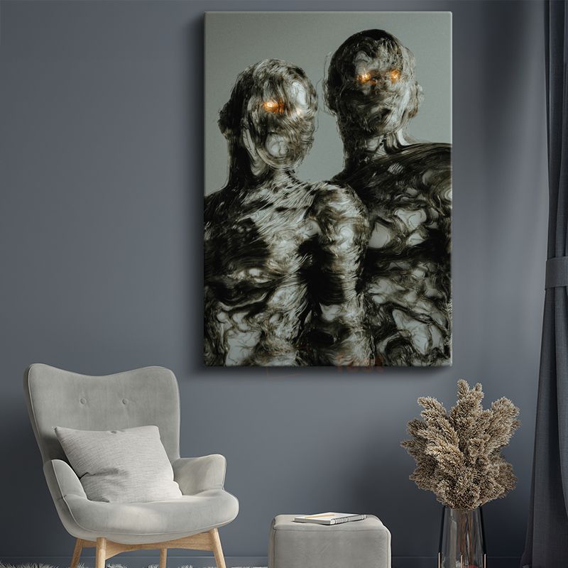 Karanlık Varlıklar - Işıldayan Gözleriyle Beliren Figürler Kanvas Tablo