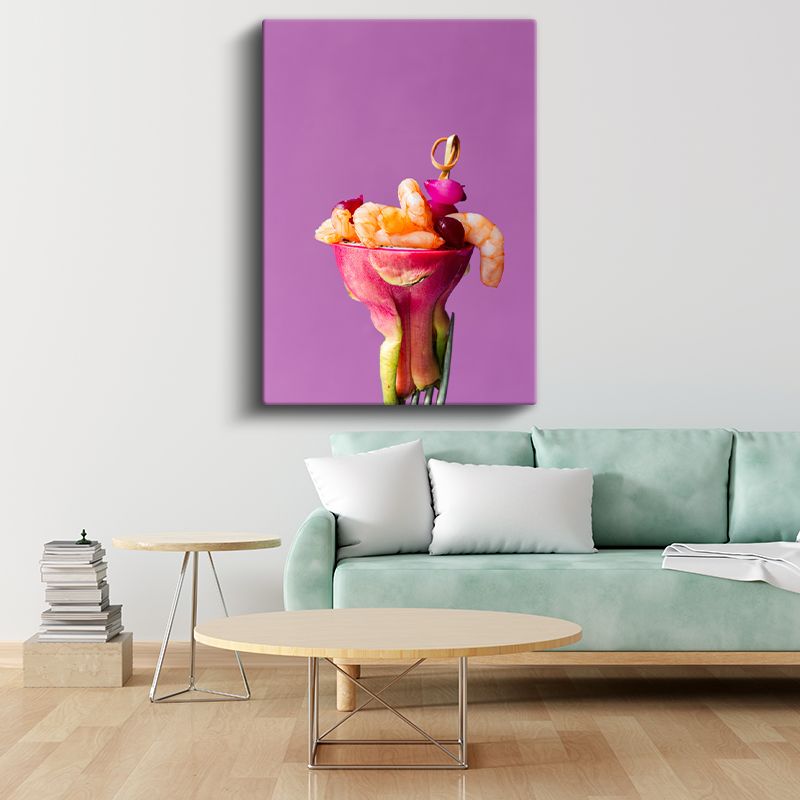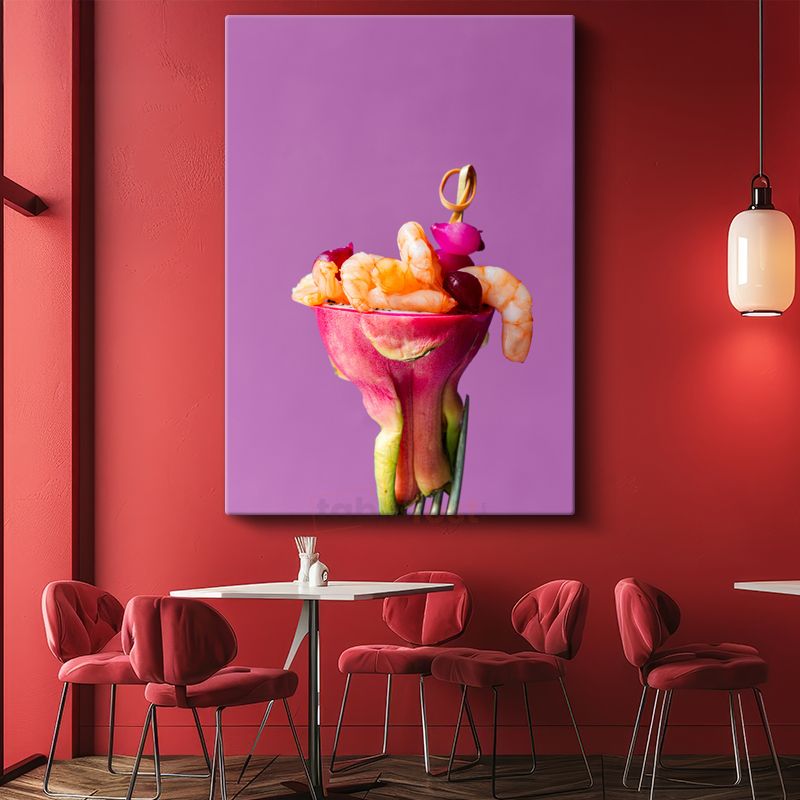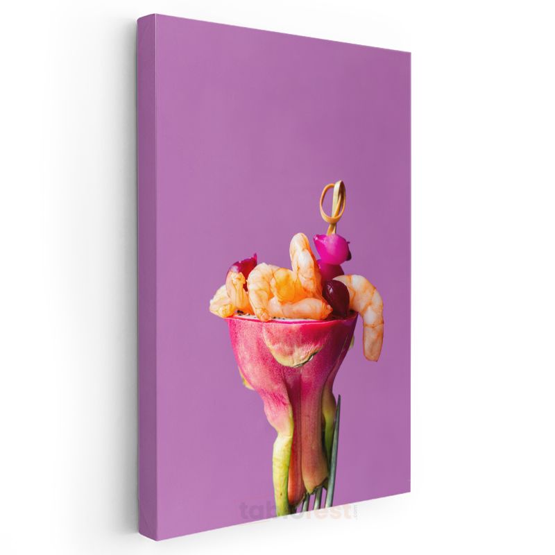 Karides Kokteyli - Çiçek Sunumlu Deniz Ürünü Kanvas Tablo