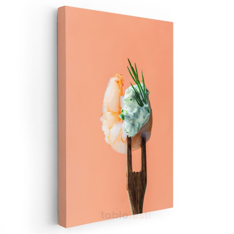 Karides Zarafeti - Çatalla Sunulan Deniz Lezzeti Kanvas Tablo