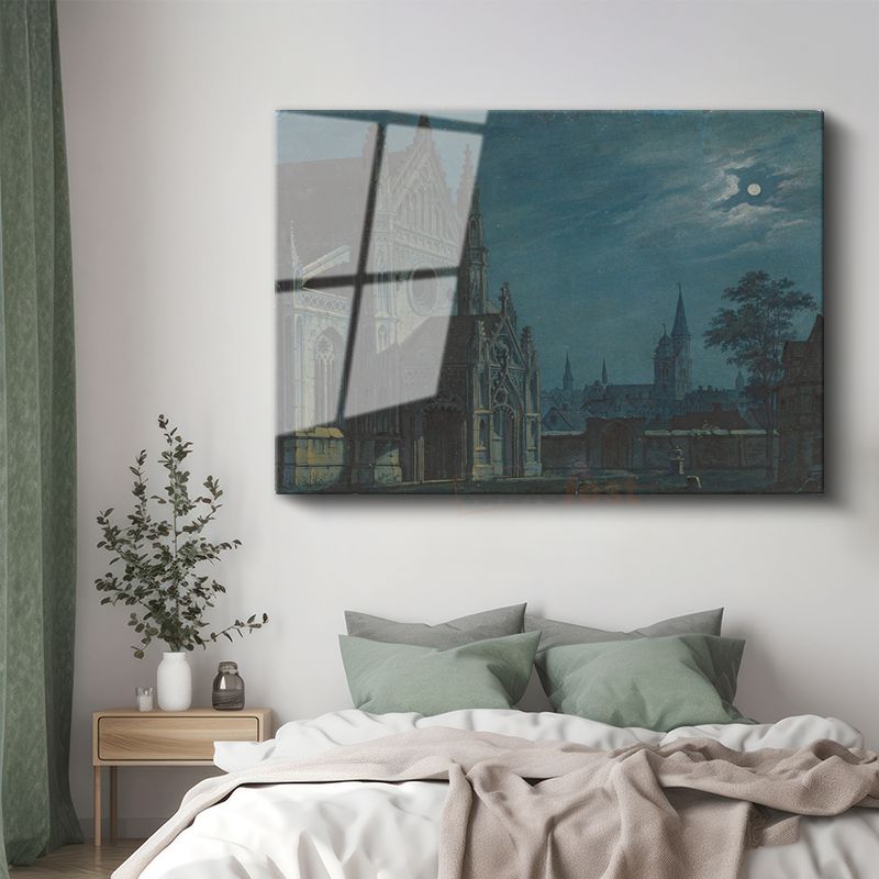 Karl Friedrich Schinkel - Ay Işığında Katedral Cam Tablo