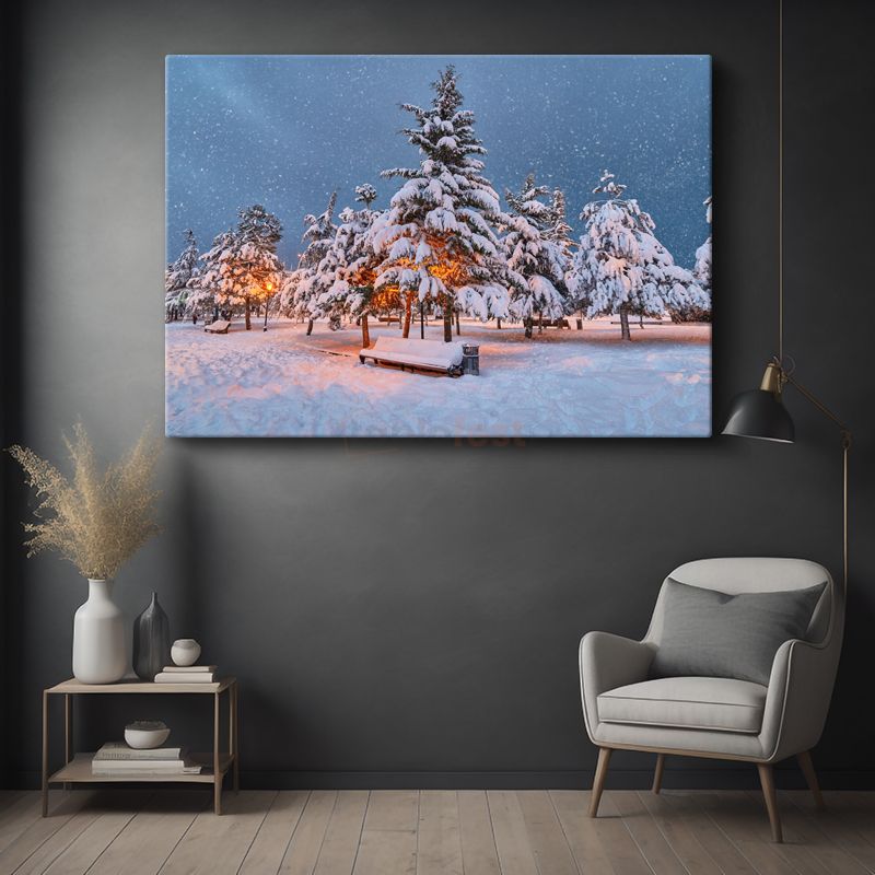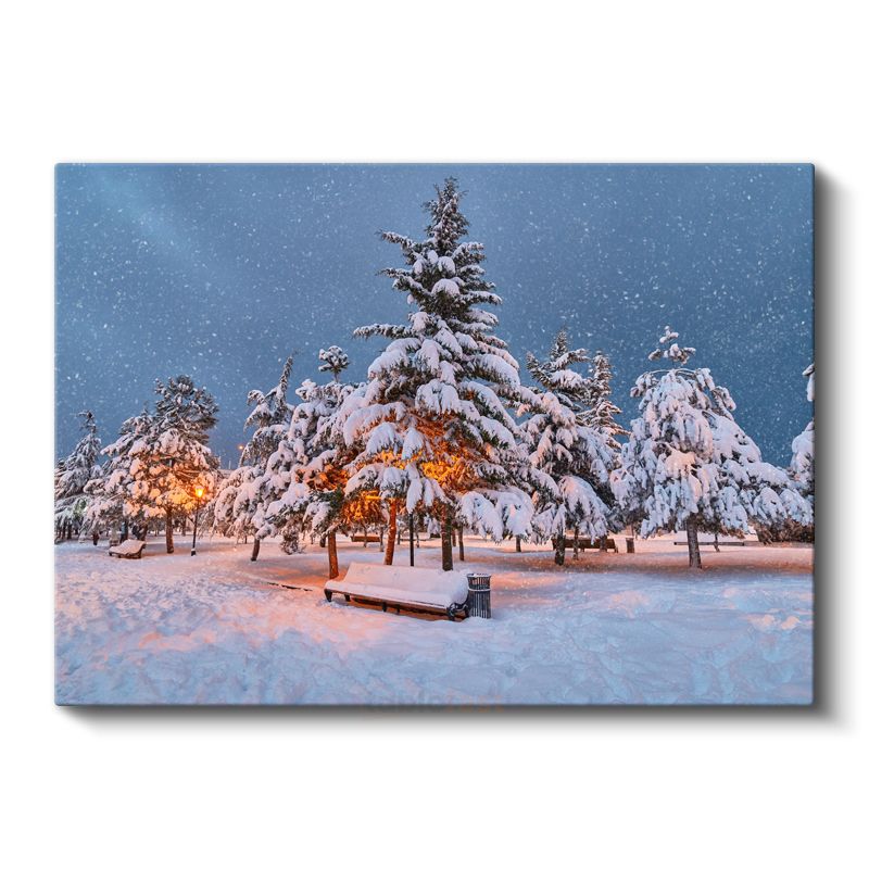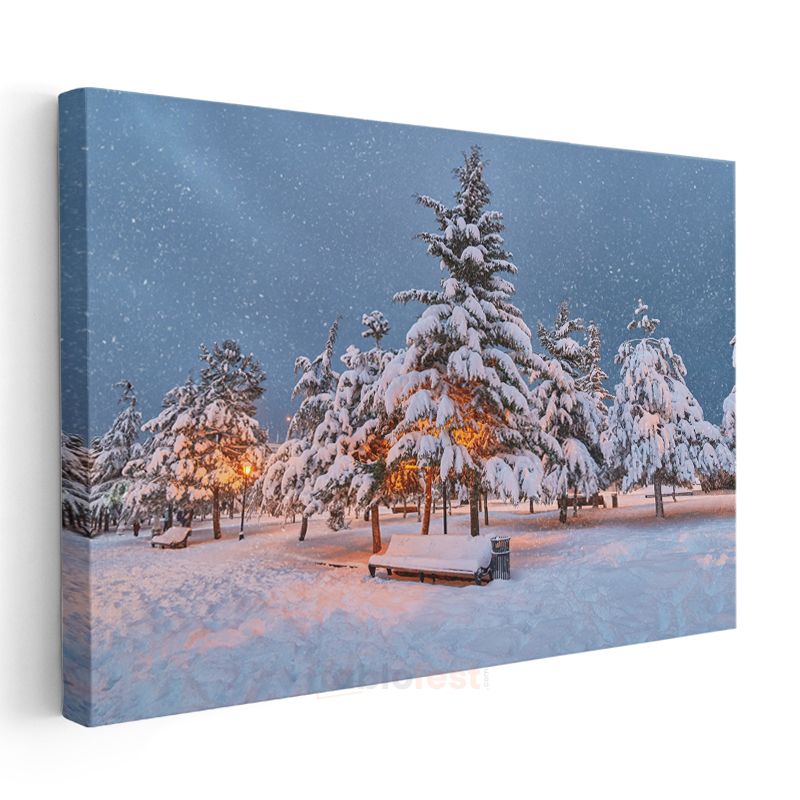 Karlı Çamlar - Kış Mevsimi Işıklı Orman Kanvas Tablo