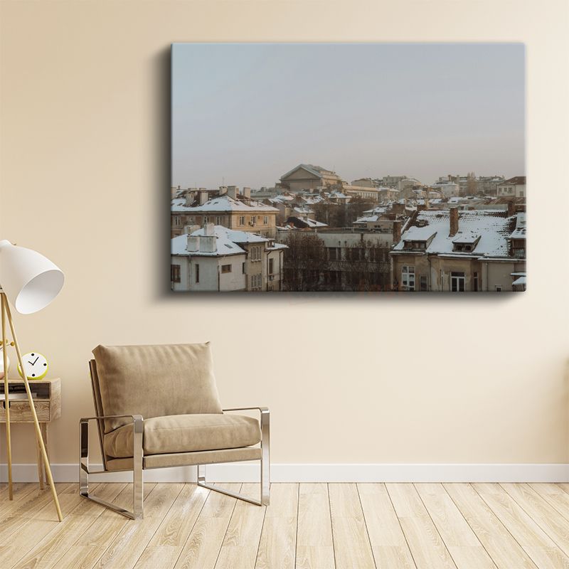Karlı Çatılar - Kış Mevsiminde Şehir Dokusu Kanvas Tablo