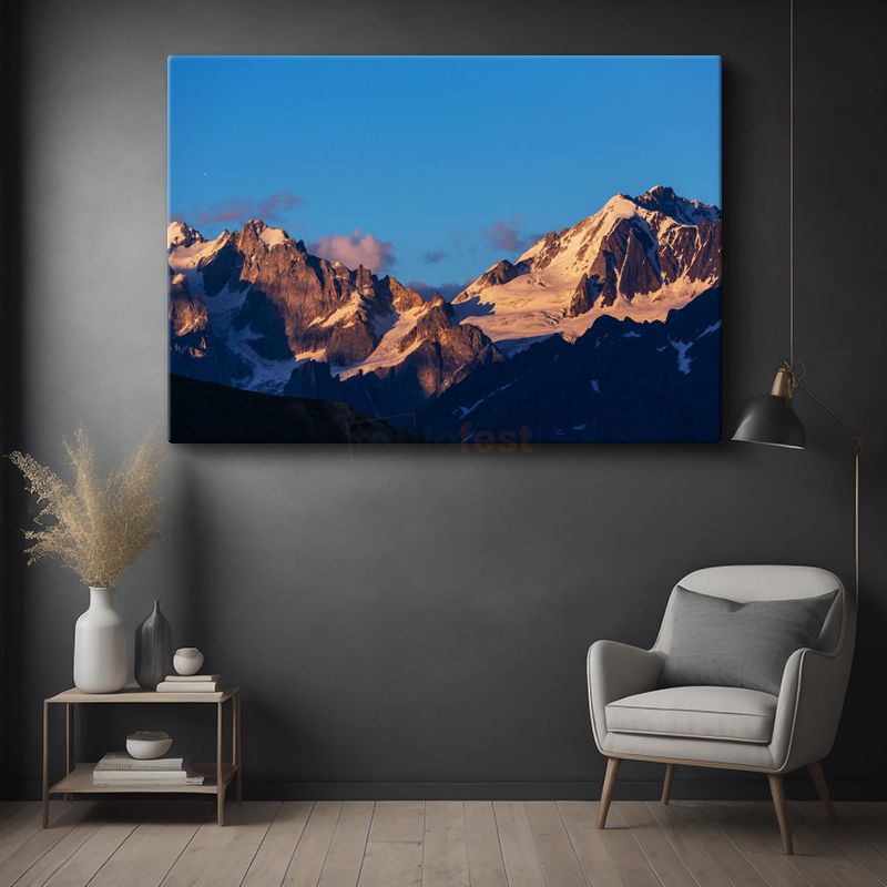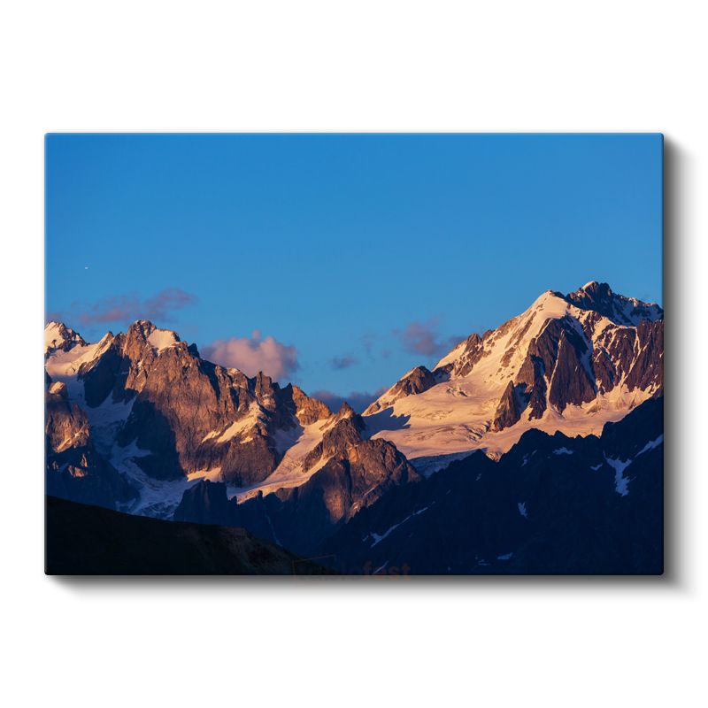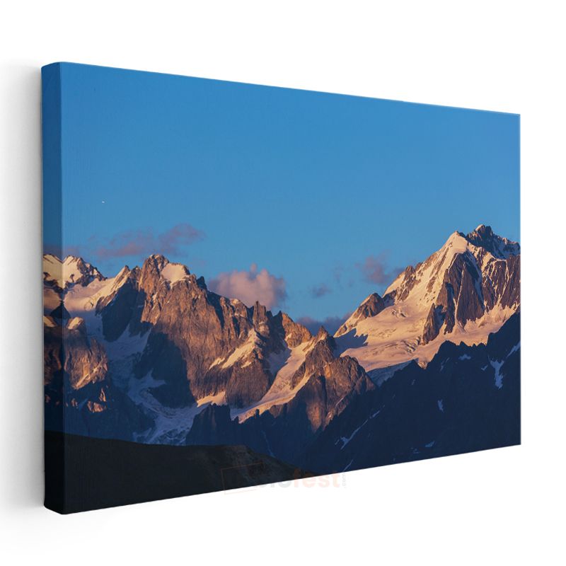 Karlı Dağ Zirveleri - Gün Batımında Altın Işıltılı Doruklar Kanvas Tablo