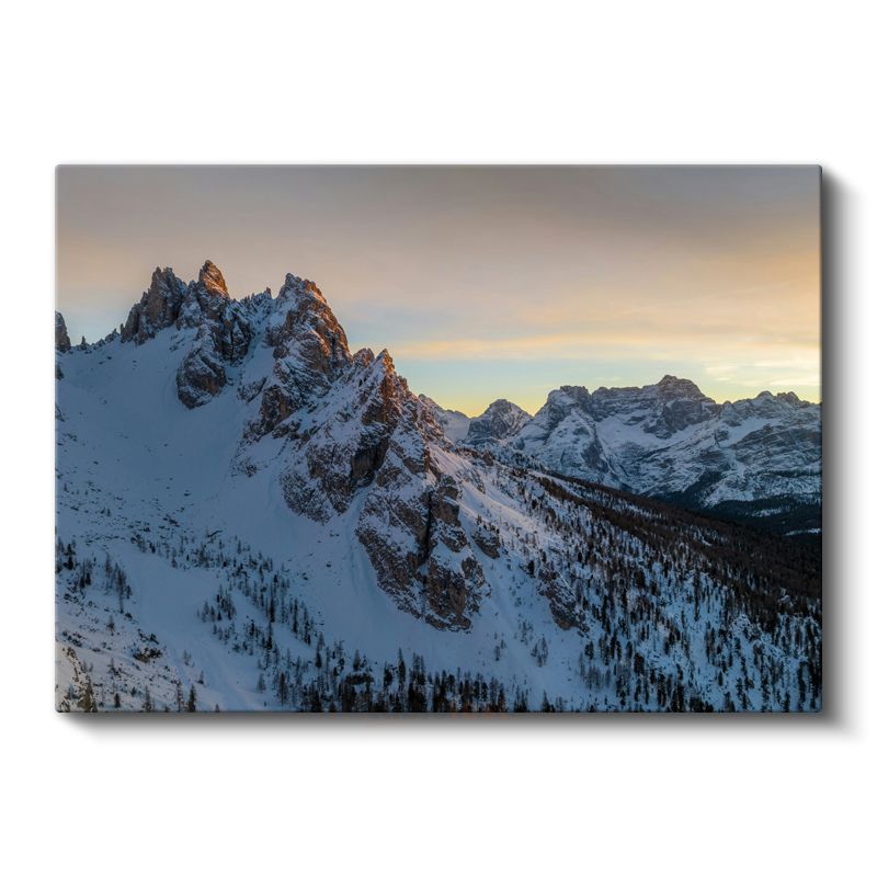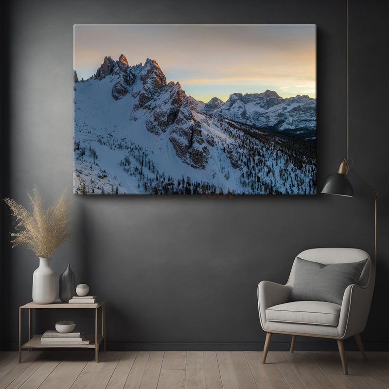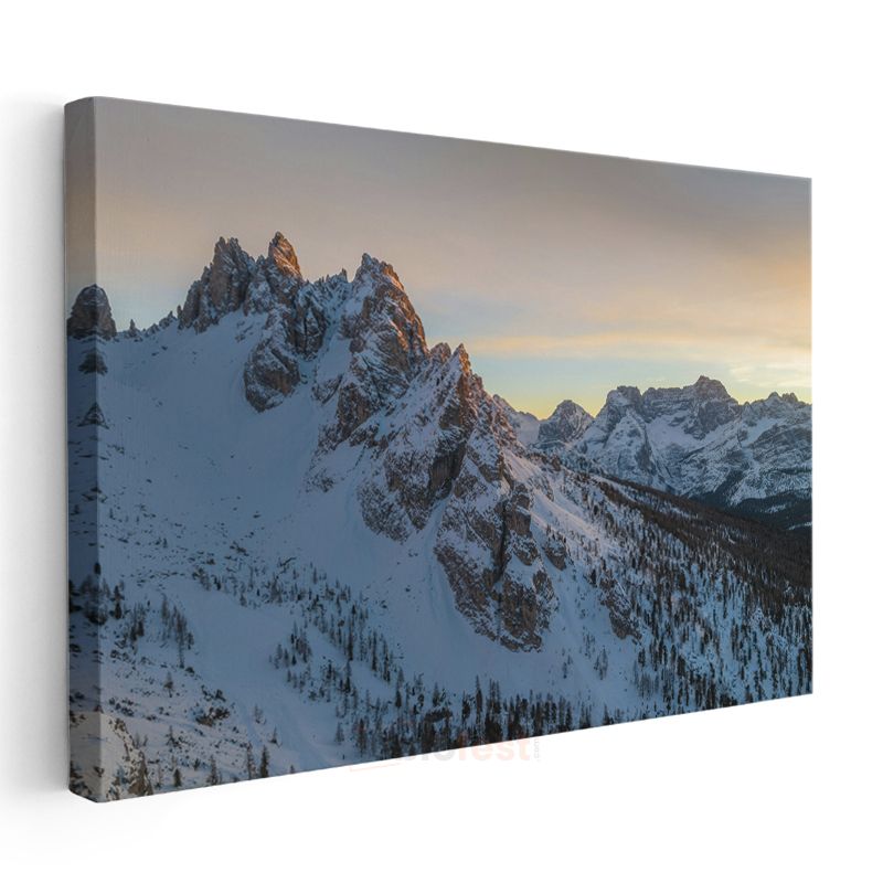 Karlı Dağ Zirveleri - Gün Batımında Işıldayan Alpler Kanvas Tablo