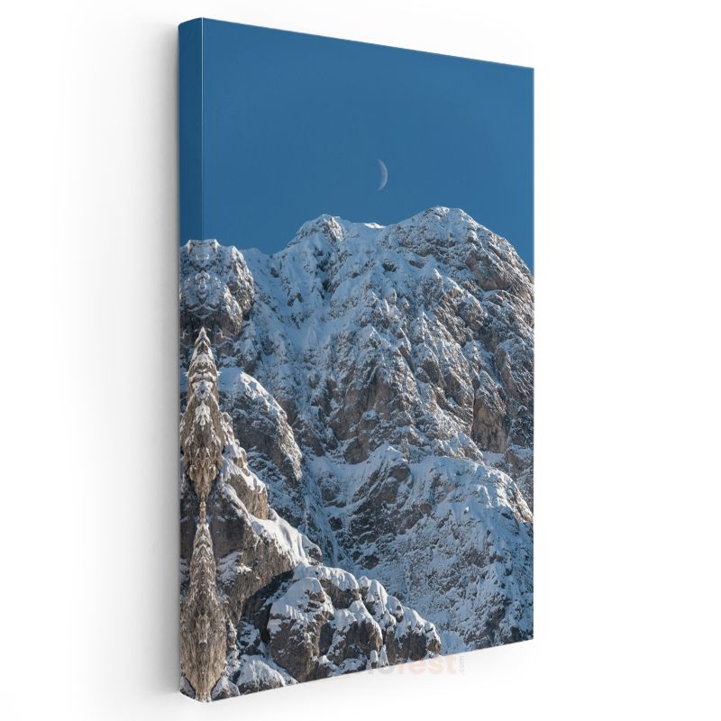 Karlı Doruklar - Ay Işığında Dağ Zirvesi Kanvas Tablo