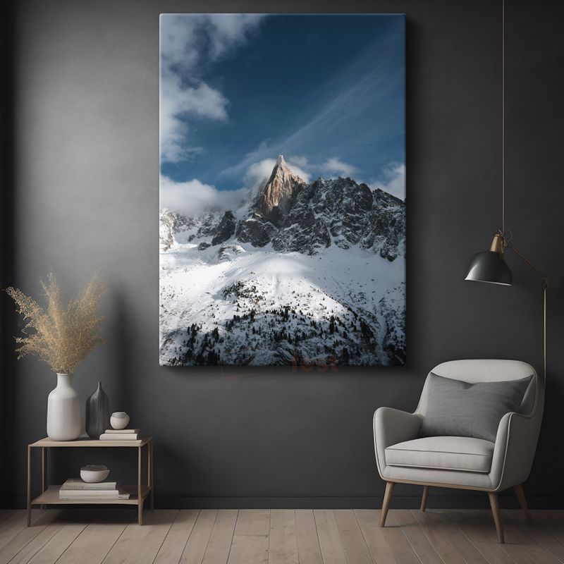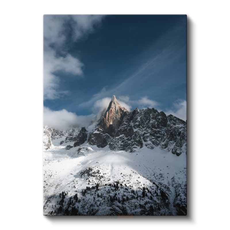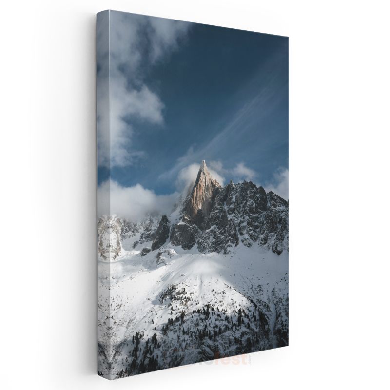 Karlı Doruklar - Bulutlar Arasından Yükselen Heybetli Dağ Zirvesi Kanvas Tablo