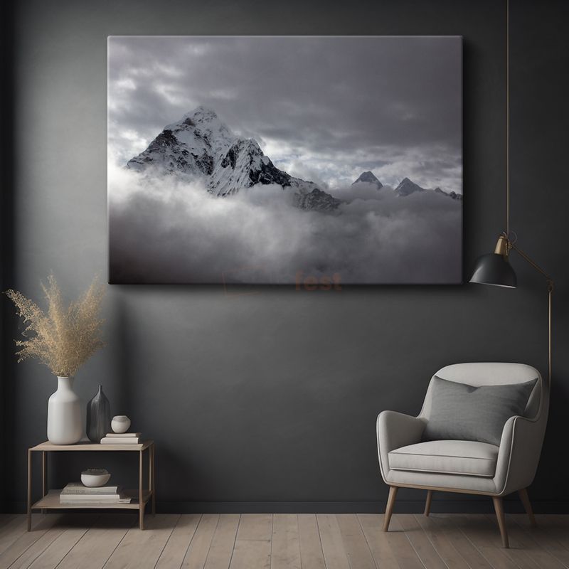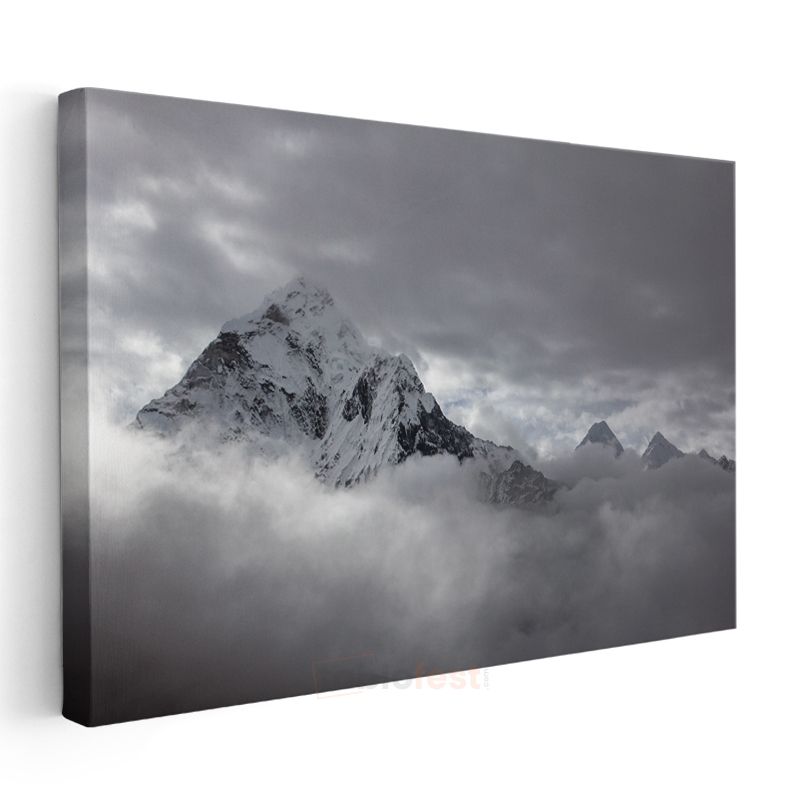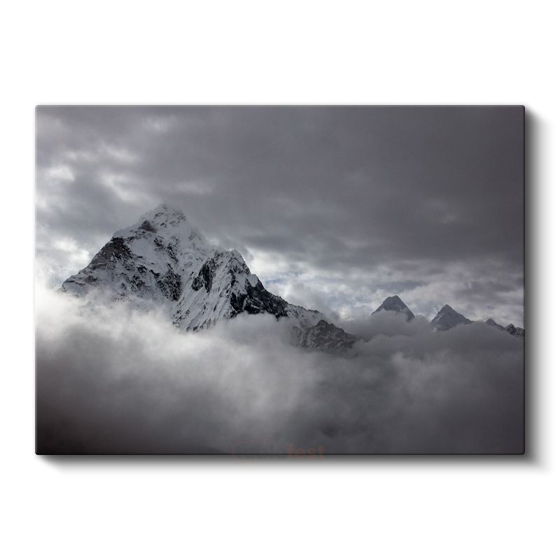Karlı Zirve - Bulutlar Arasında Yükselen Dağ Kanvas Tablo