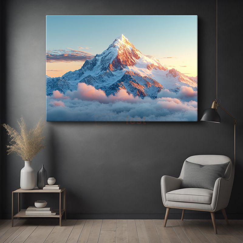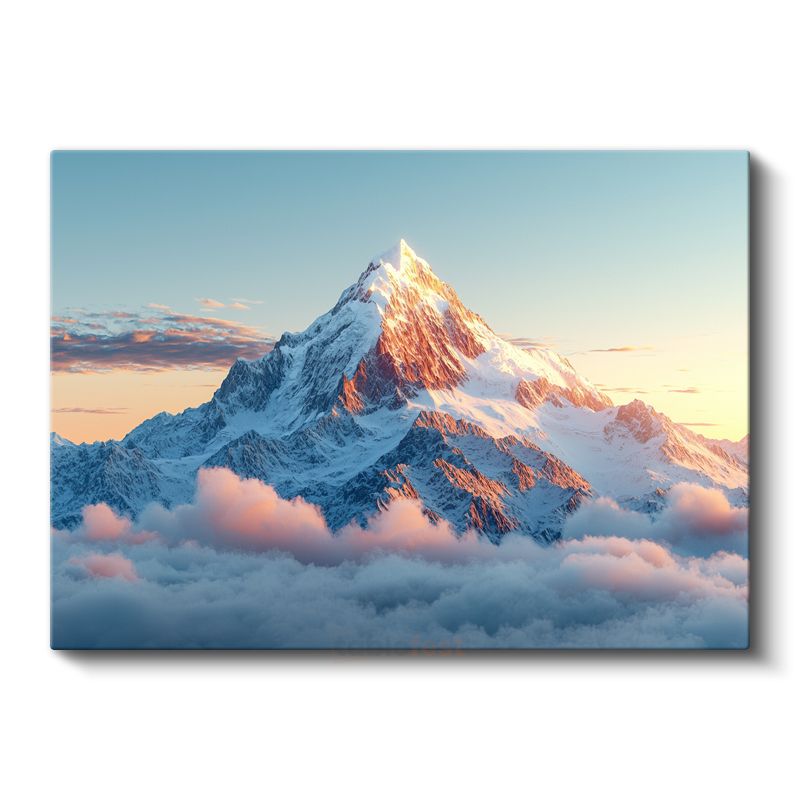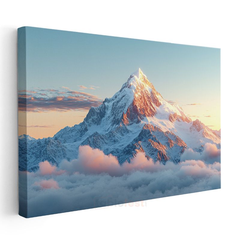Karlı Zirve - Bulutların Üzerinde Yükselen Dağ Manzarası Kanvas Tablo