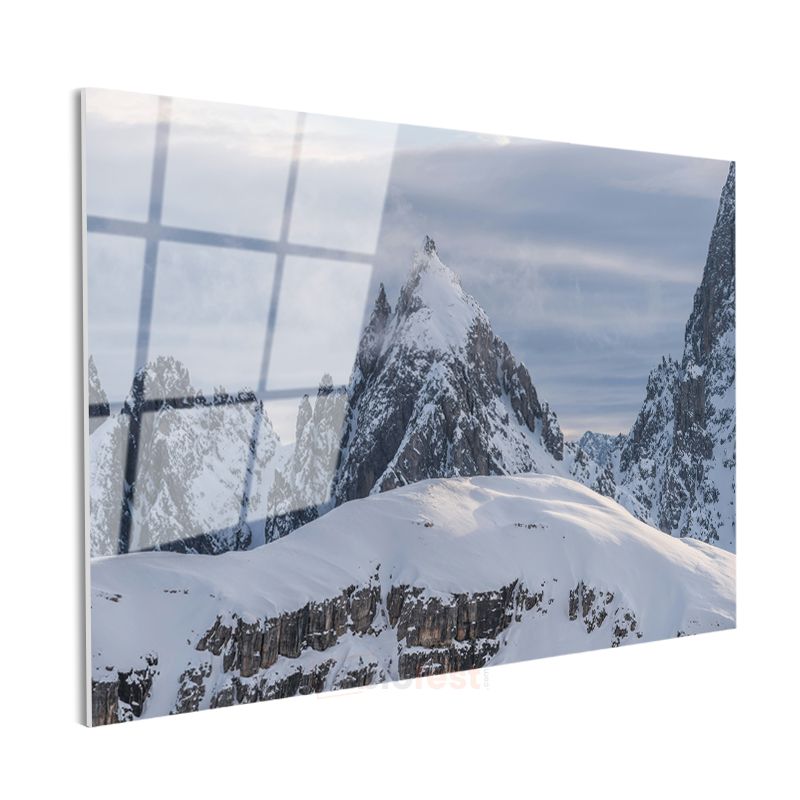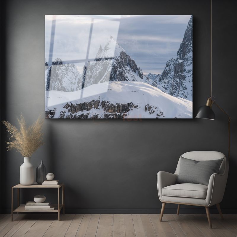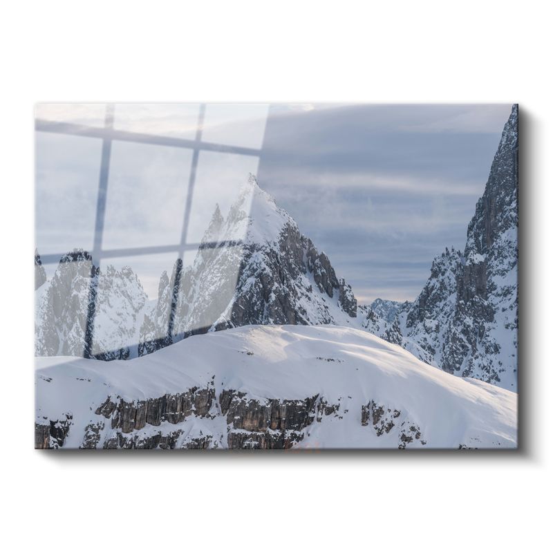 Karlı Zirve - Gökyüzüne Uzanan Sivri Dağ Tepesi Cam Tablo