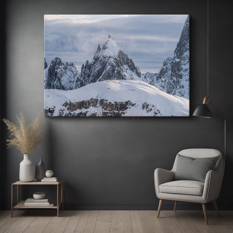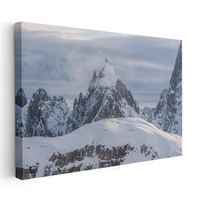 Karlı Zirve - Gökyüzüne Uzanan Sivri Dağ Tepesi Kanvas Tablo
