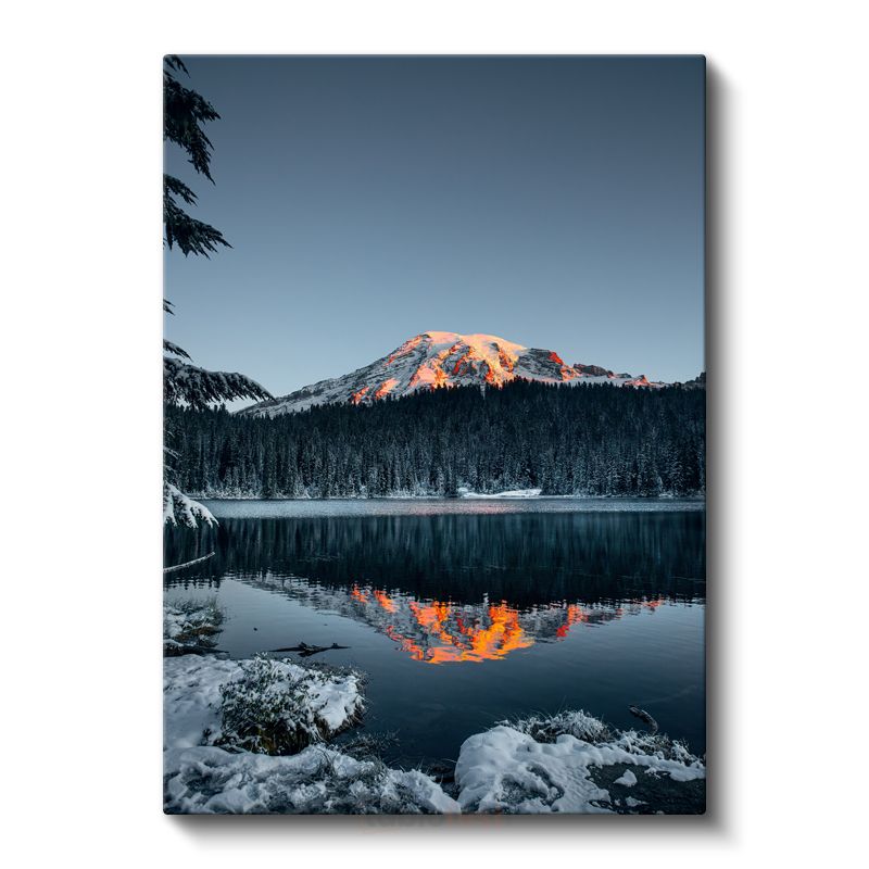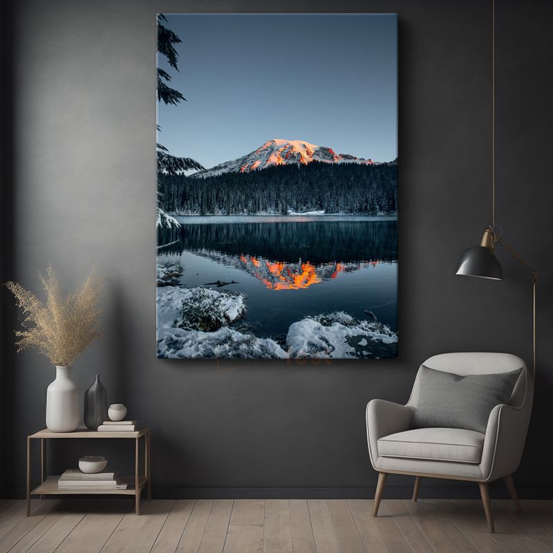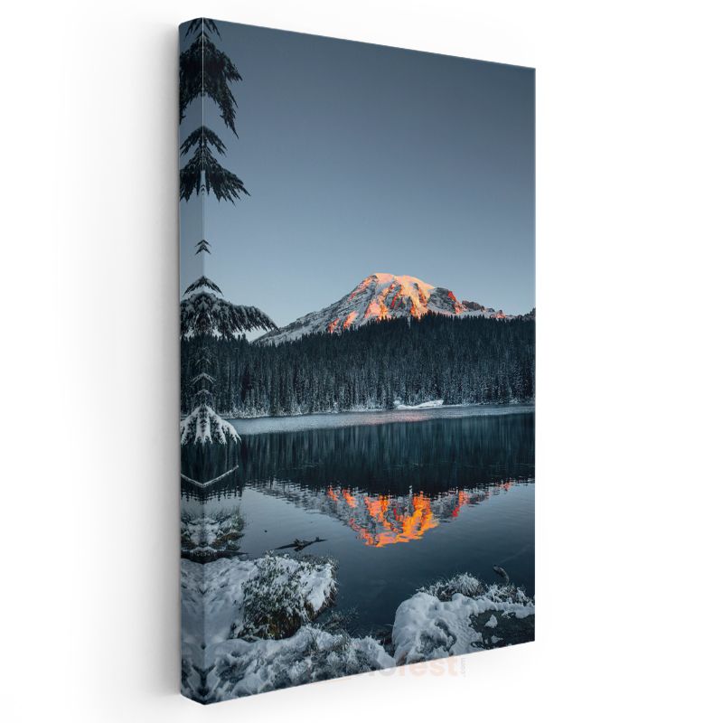 Karlı Zirve - Göl Kenarında Gün Doğumu Kanvas Tablo