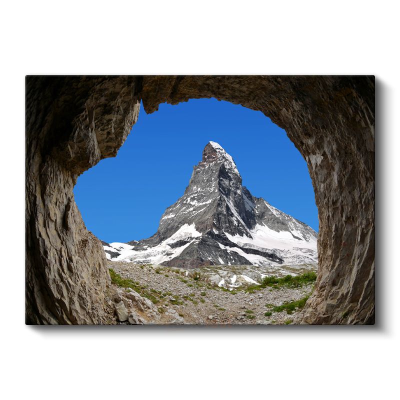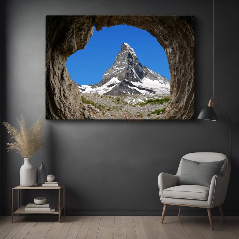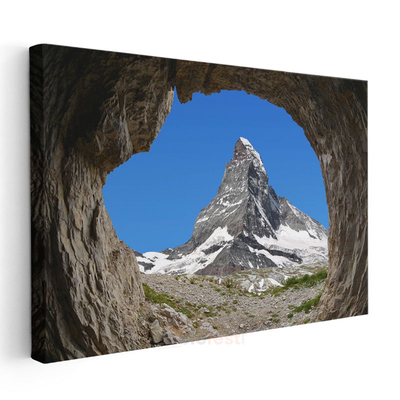 Karlı Zirve - Mağaradan Görünen Muhteşem Dağ Manzarası Kanvas Tablo