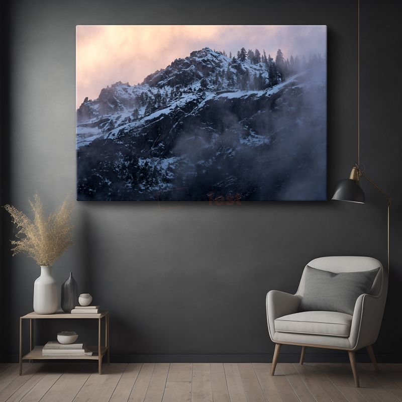 Karlı Zirve - Sisli Dağ Silsilesi Kanvas Tablo