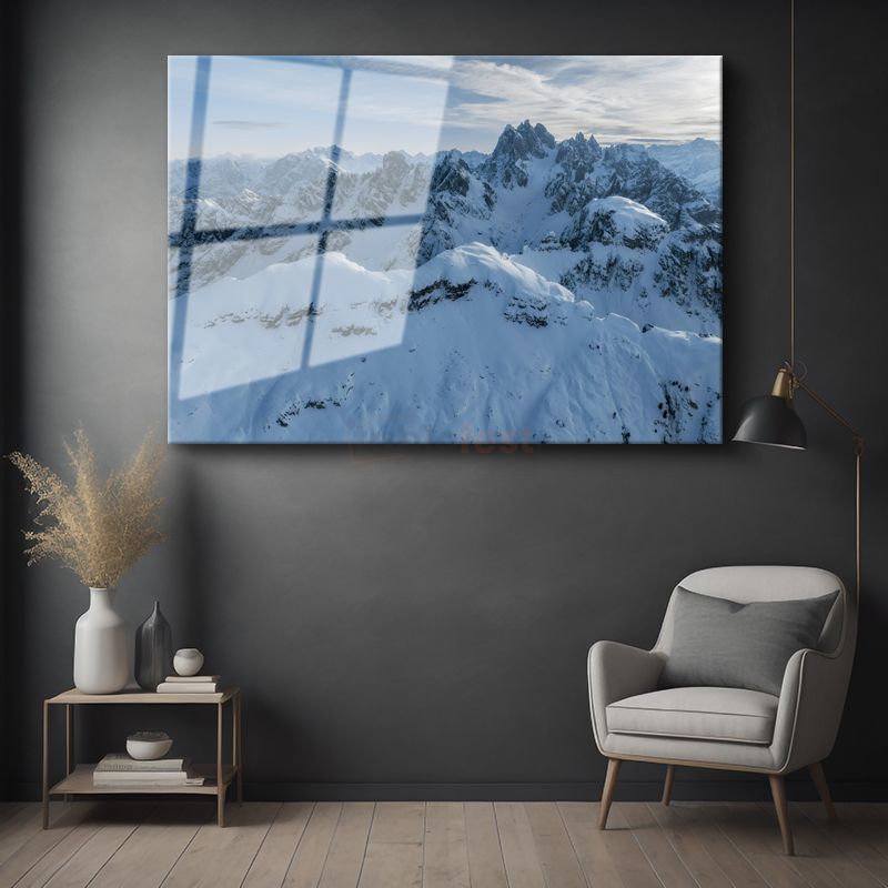 Karlı Zirveler - Alp Dağlarının Muhteşem Manzarası Cam Tablo