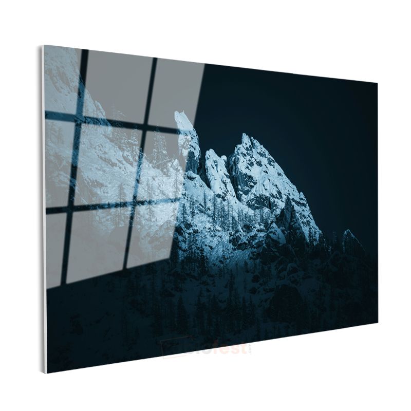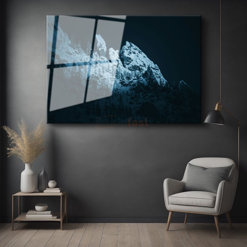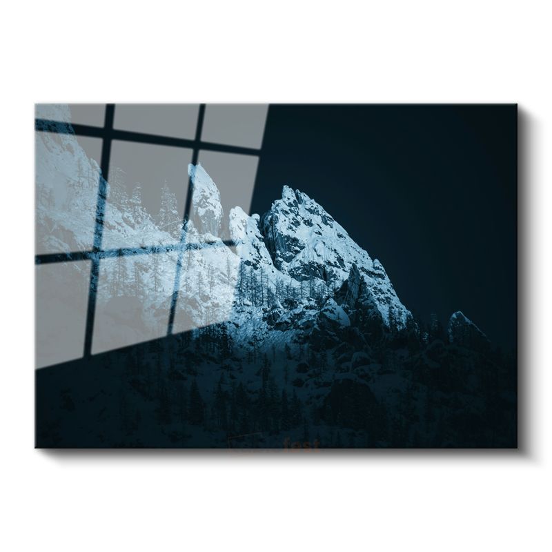 Karlı Zirveler - Gece Aydınlanan Dağ Silüeti Cam Tablo