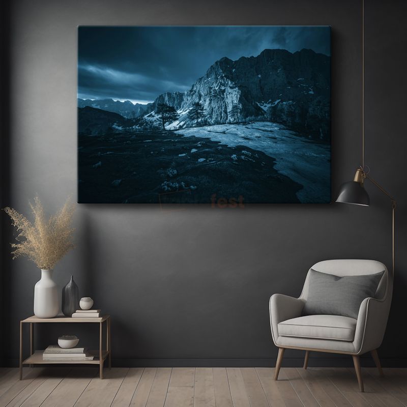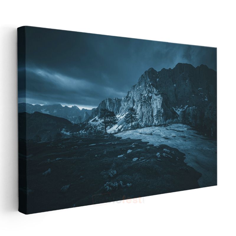 Karlı Zirveler - Gecenin Maviliğinde Kanvas Tablo