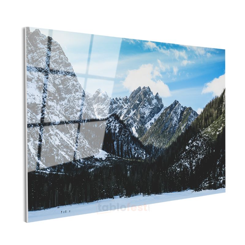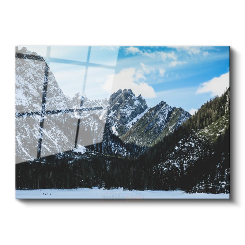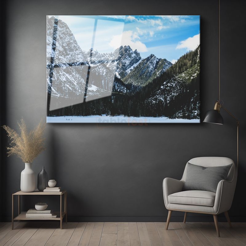 Karlı Zirveler - Kış Mevsiminde Dağ Silüetleri Cam Tablo