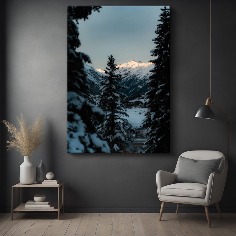 Karlı Zirveler - Kış Ormanının Sessiz Tanıkları Kanvas Tablo