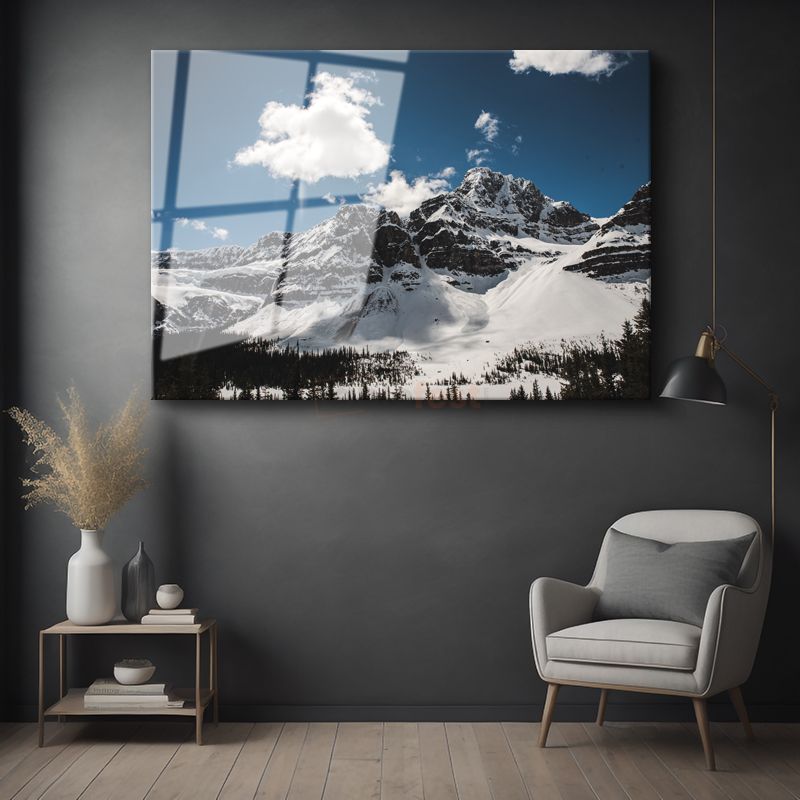Karlı Zirveler - Mavi Gökyüzü Altında Cam Tablo