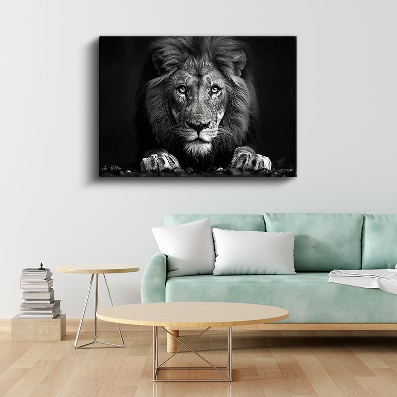 Karşıdan Aslan - Güçlü Bakışlar Kanvas Tablo