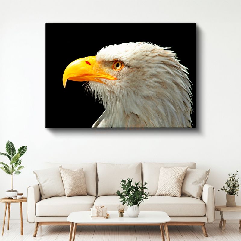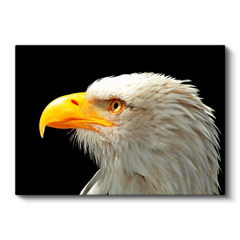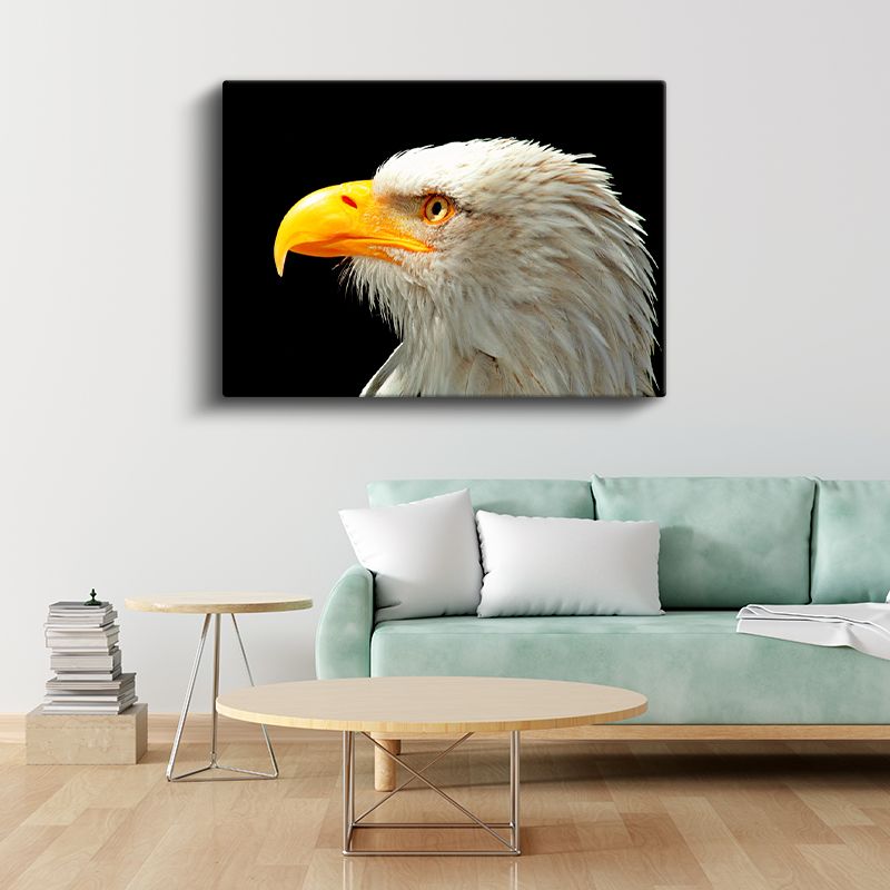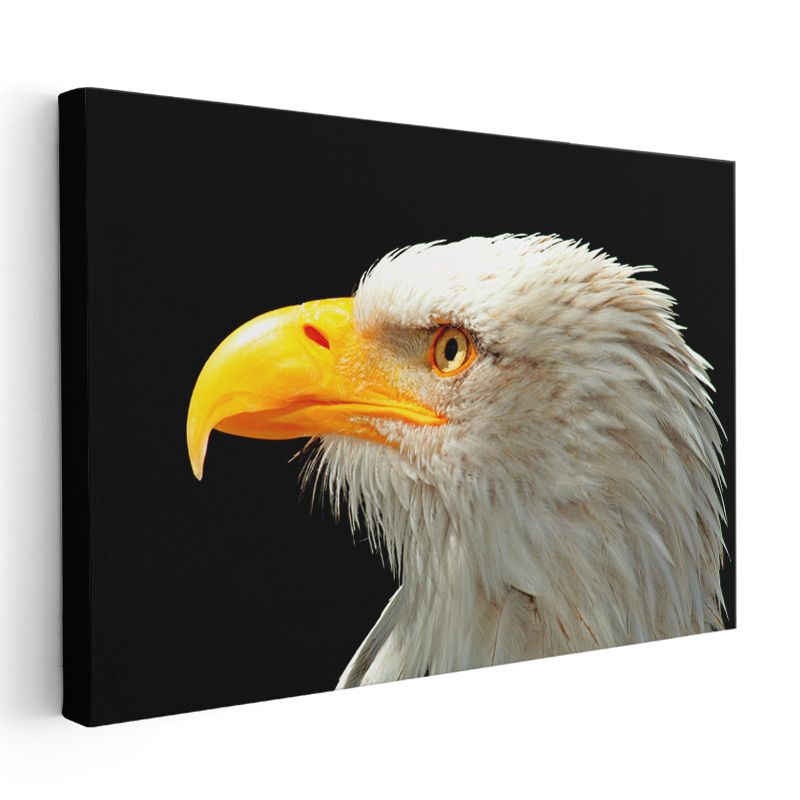 Kartal Bakışı - Siyah Fonda Beyaz Başlı Avcı Kuş Kanvas Tablo