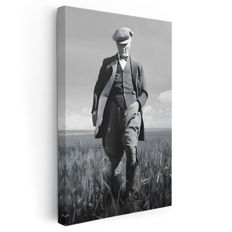 Kasketli Atatürk - Buğday Tarlasında Kanvas Tablo