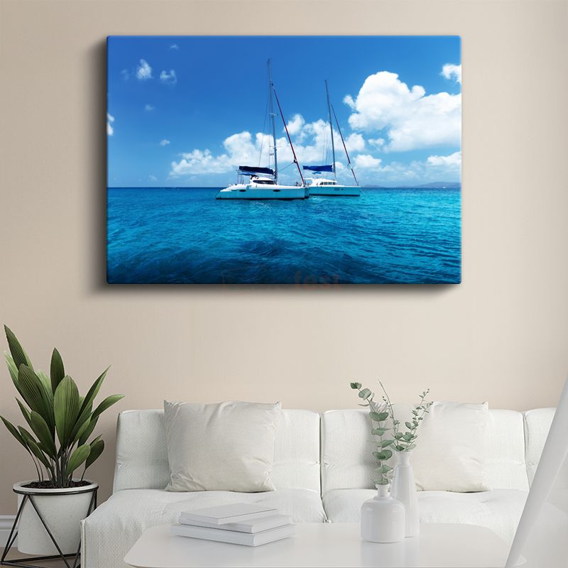 Katamaran Yelkenli - Turkuaz Sularda İkiz Gövde Kanvas Tablo