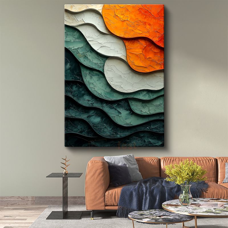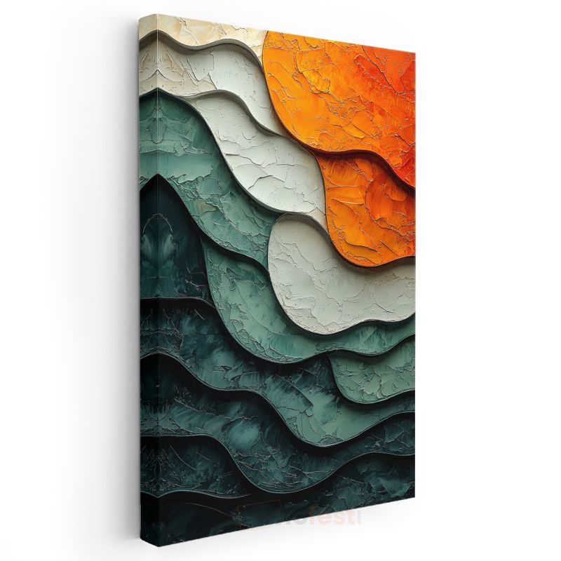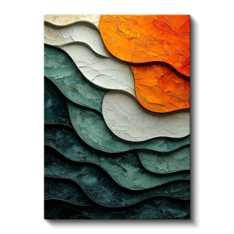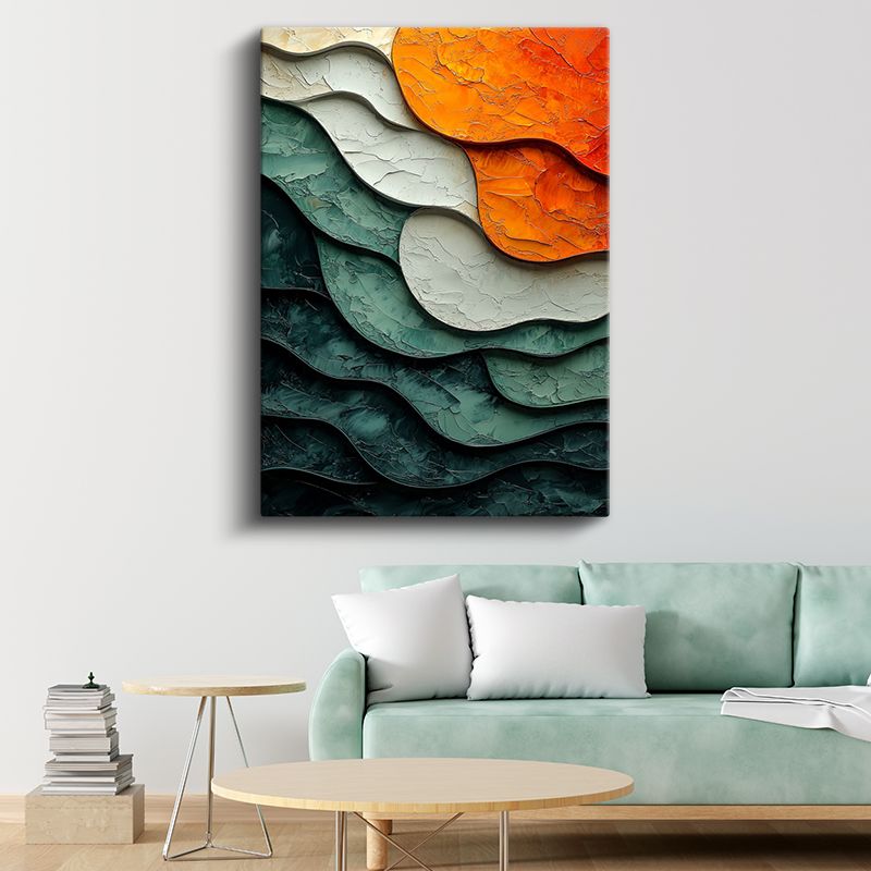 Katmanlı Dalgalar - Tekstürlü Okyanus Soyutlaması Kanvas Tablo