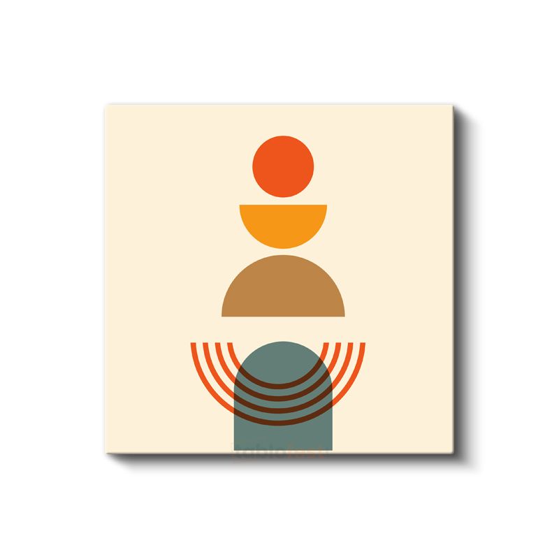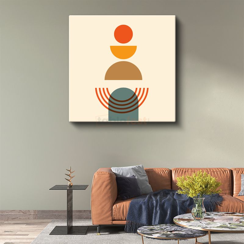 Katmanlı Denge - Renkli Yarım Daireler ve Çizgiler Kanvas Tablo