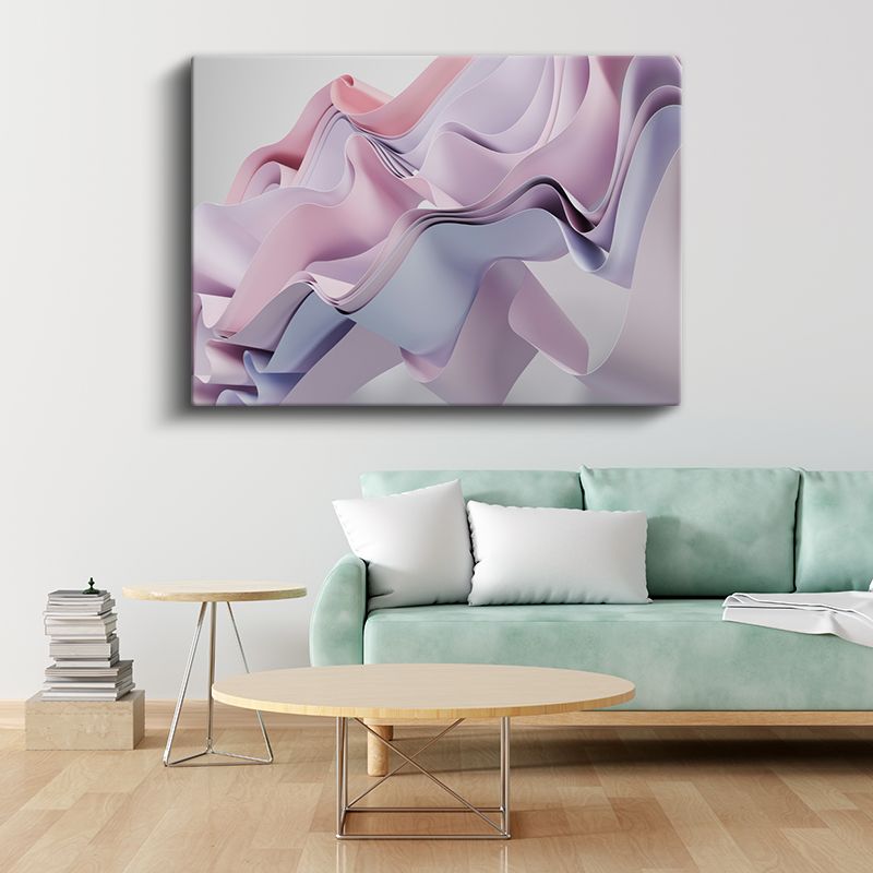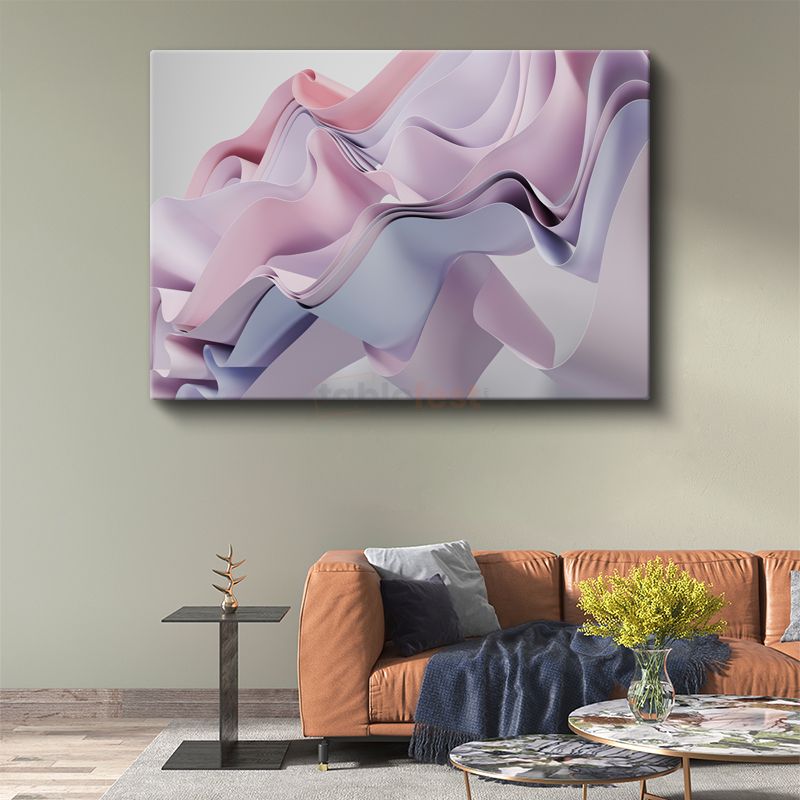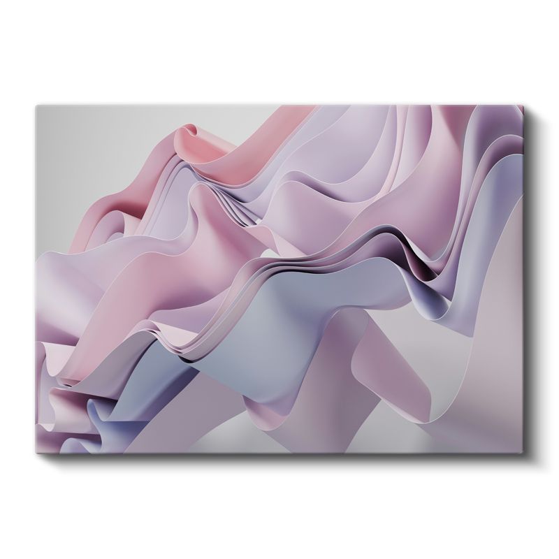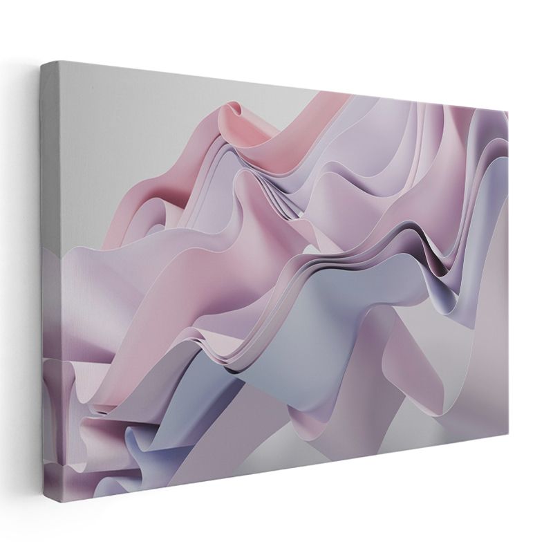 Katmanlı Formlar - Pembe ve Mor Tonlarında Dalgalı Kumaş Etkisi Kanvas Tablo