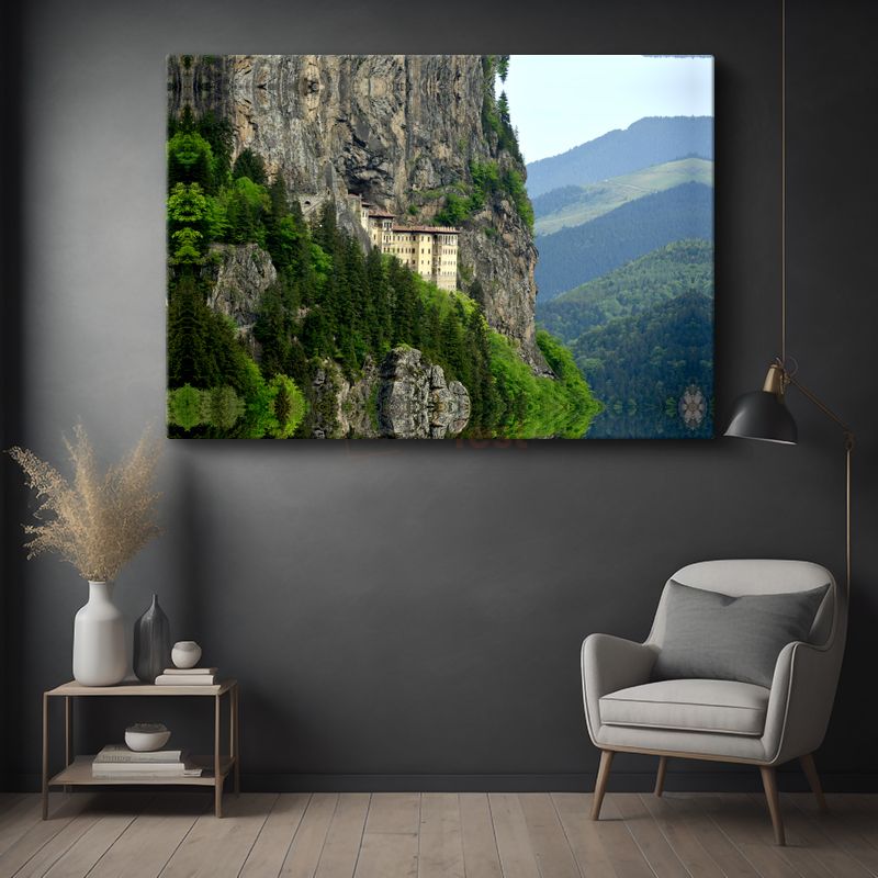 Kayalık Manastır - Dağ Yamacında Saklı Tarihi Yapı Kanvas Tablo