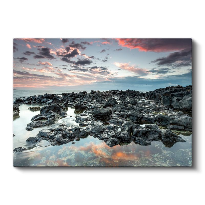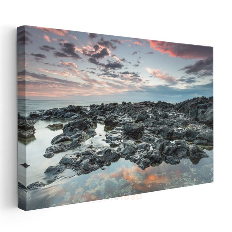 Kayalık Sahil - Pastel Renkli Gökyüzü Altında Deniz Manzarası Kanvas Tablo