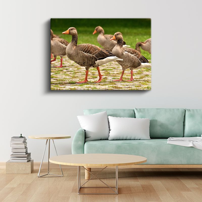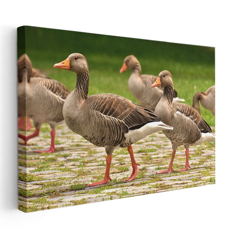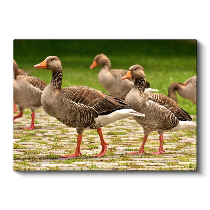 Kaz Yürüyüşü - Taş Zeminde İlerleyen Sürü Kanvas Tablo