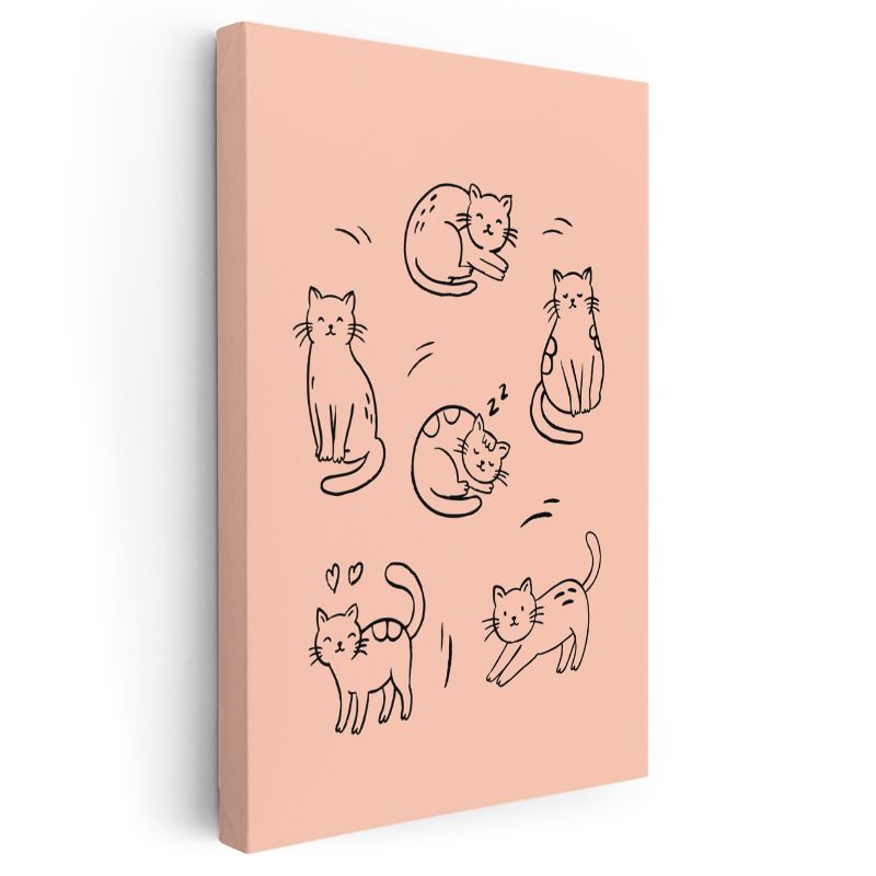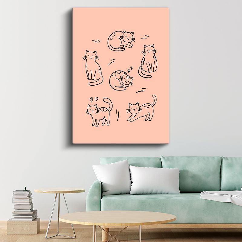 Kedi Figürleri - Somon Zeminde Sevimli Dostlar Kanvas Tablo