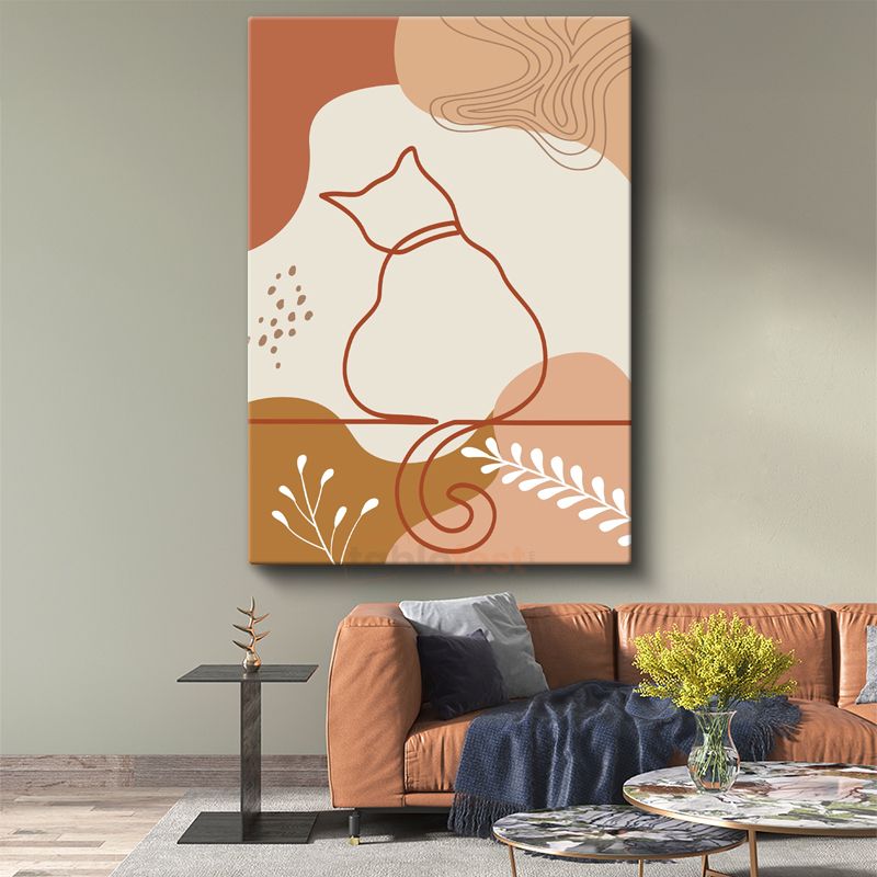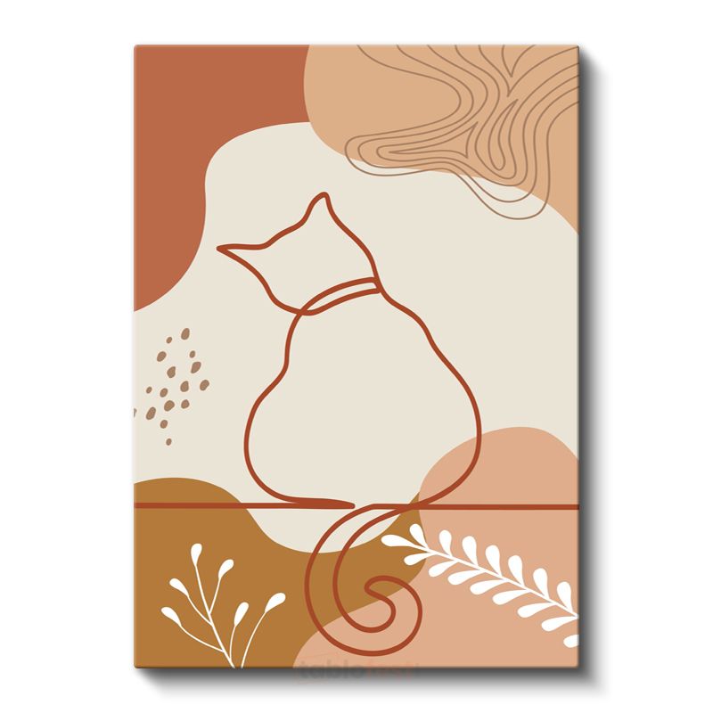 Kedi Silueti - Organik Formlar Kompozisyonu Kanvas Tablo