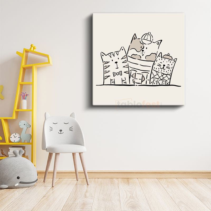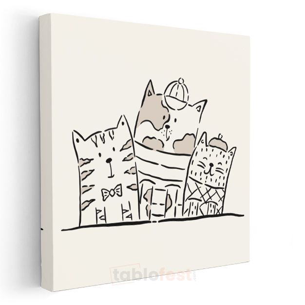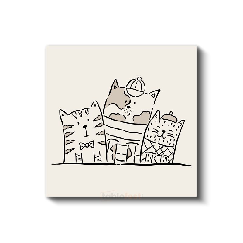 Kedi Üçlüsü - Şapkalı Sevimli Dostlar Kanvas Tablo